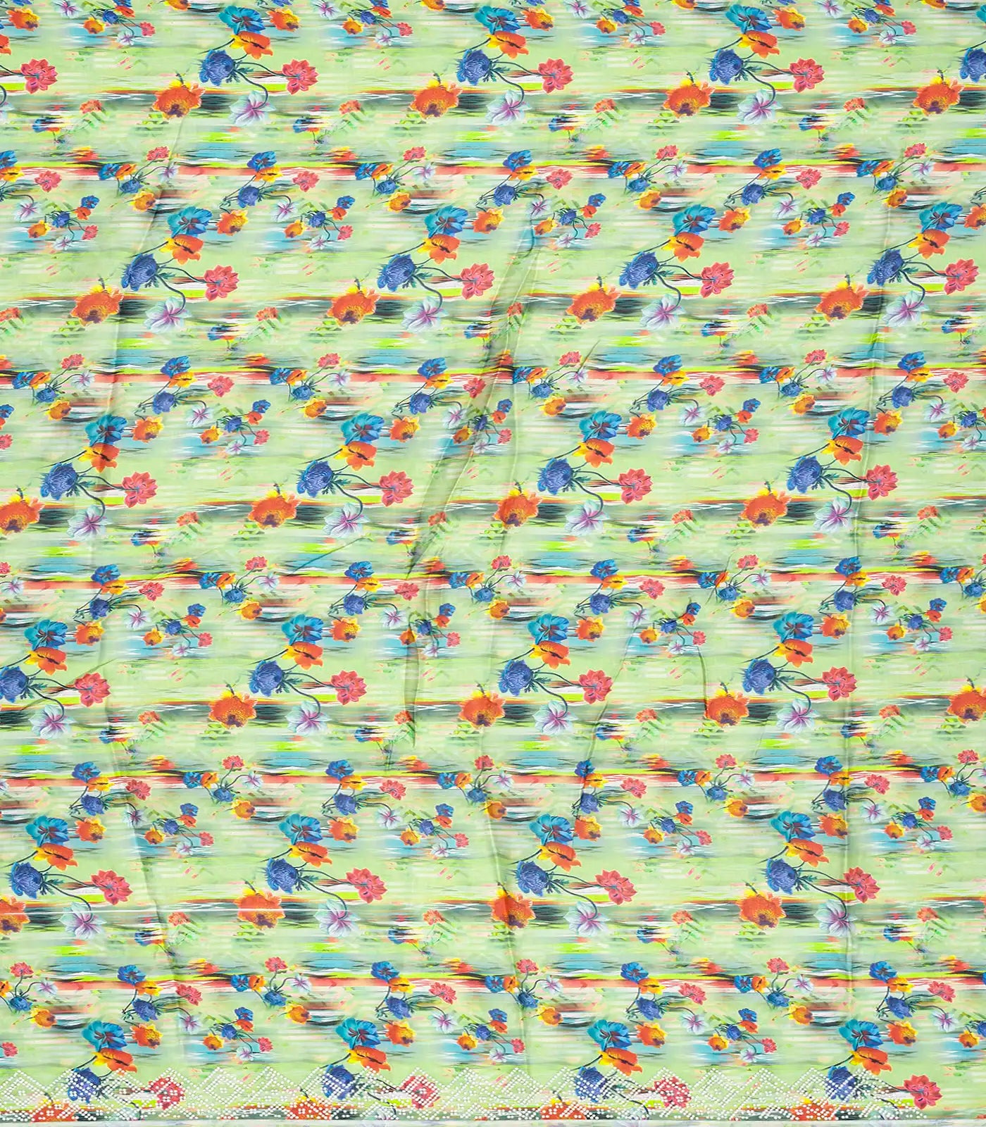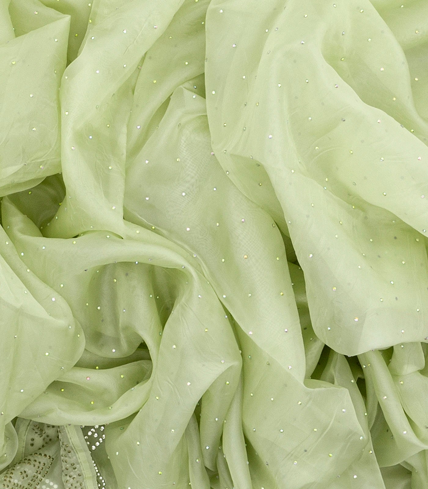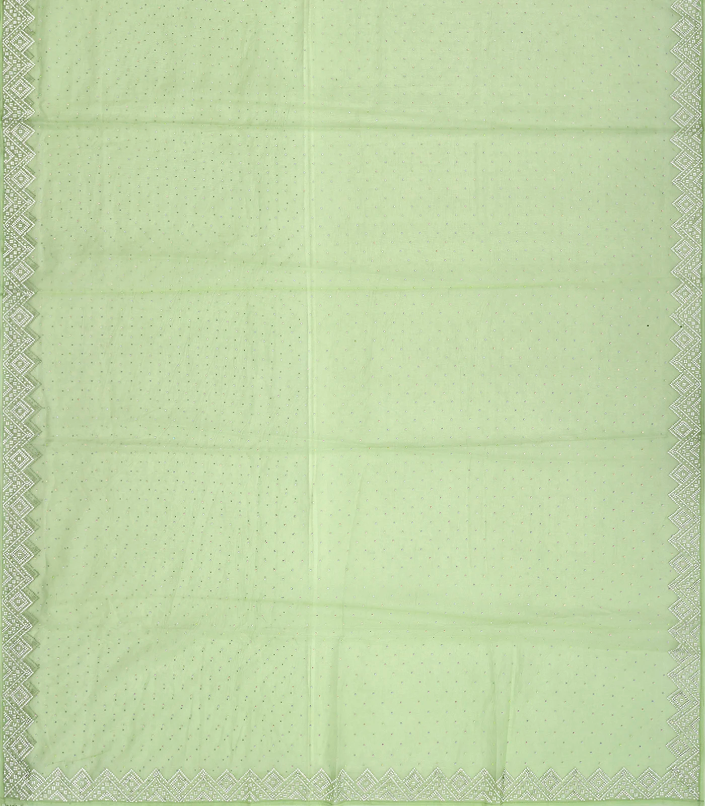 Mint Green Embroidered Cotton Saree With Stone Work Body-Mint Green