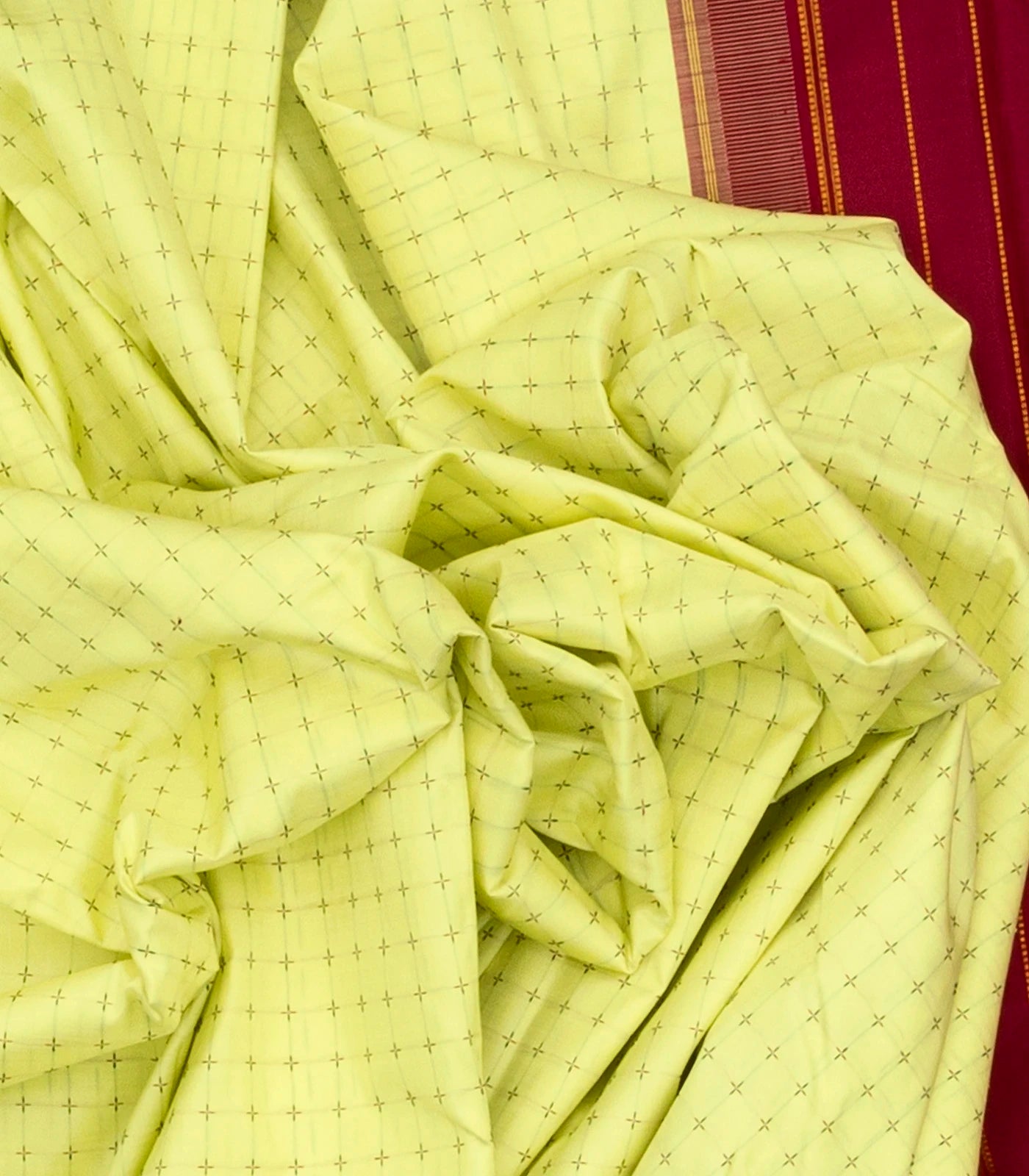 Mint Green Handloom Kanchipuram Korvai Silk Saree With Broken Checks
