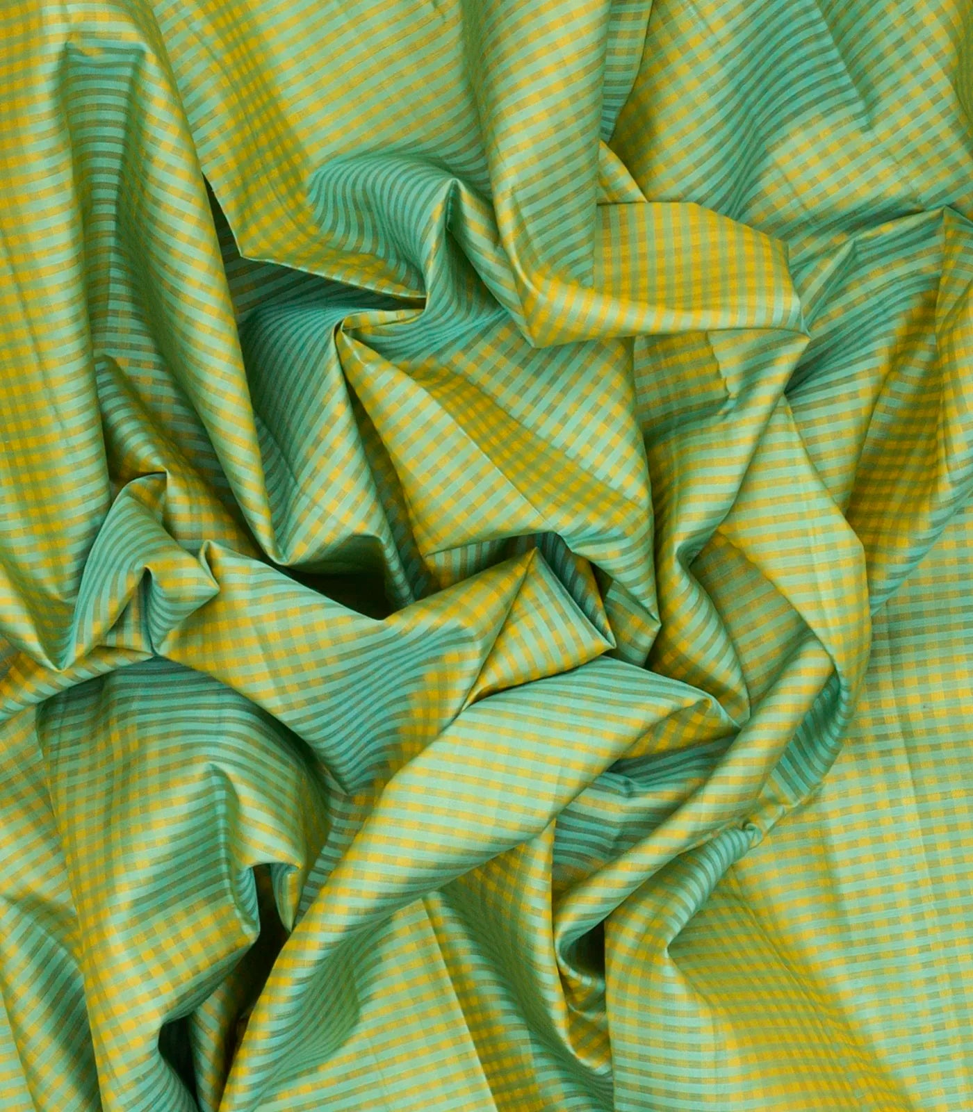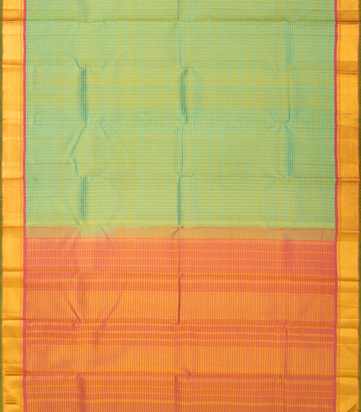 Mint Green Handloom Kanchipuram Silk Saree With Checks-KA12310