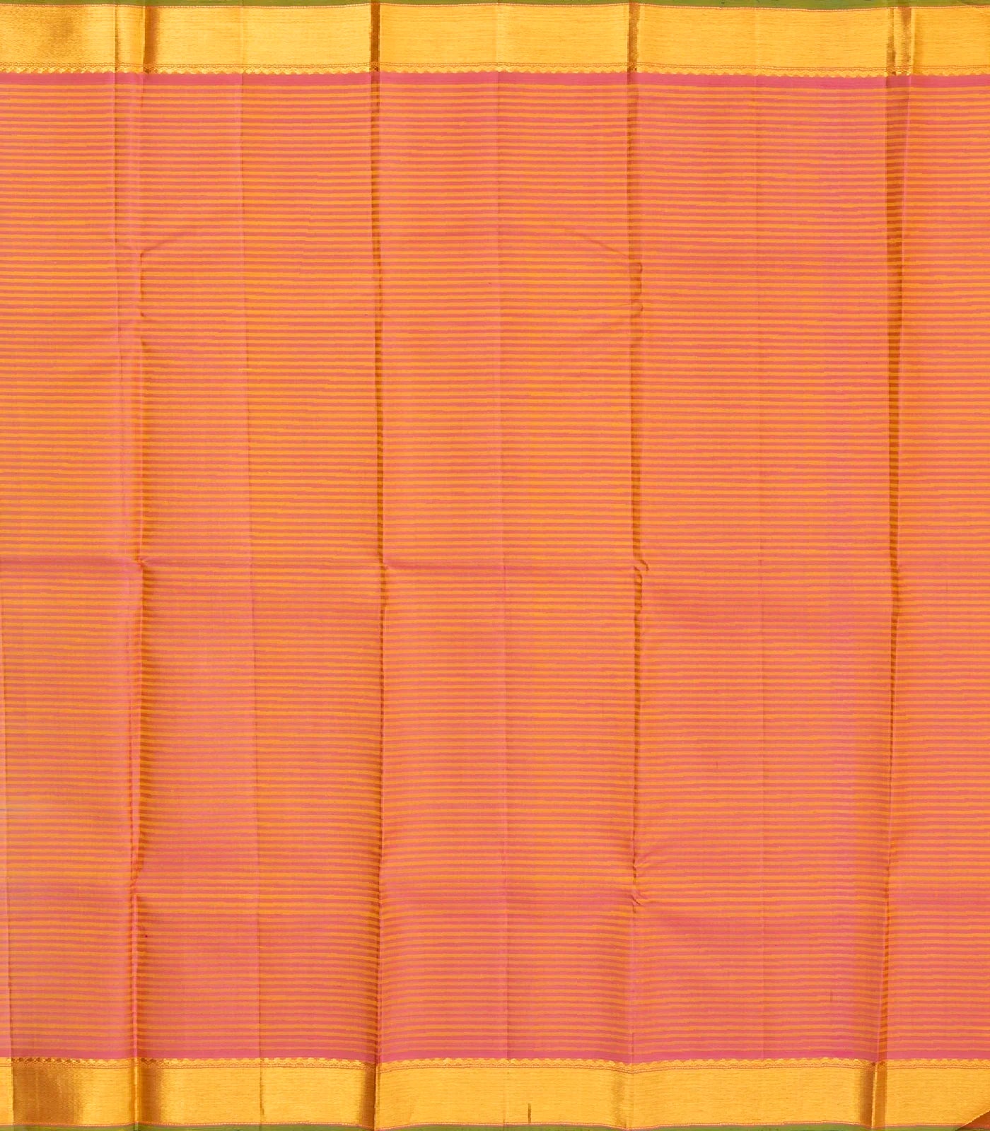 This handwoven korvai kanchipuram silk saree is filled with checks mint green body along with contrast border and pallu