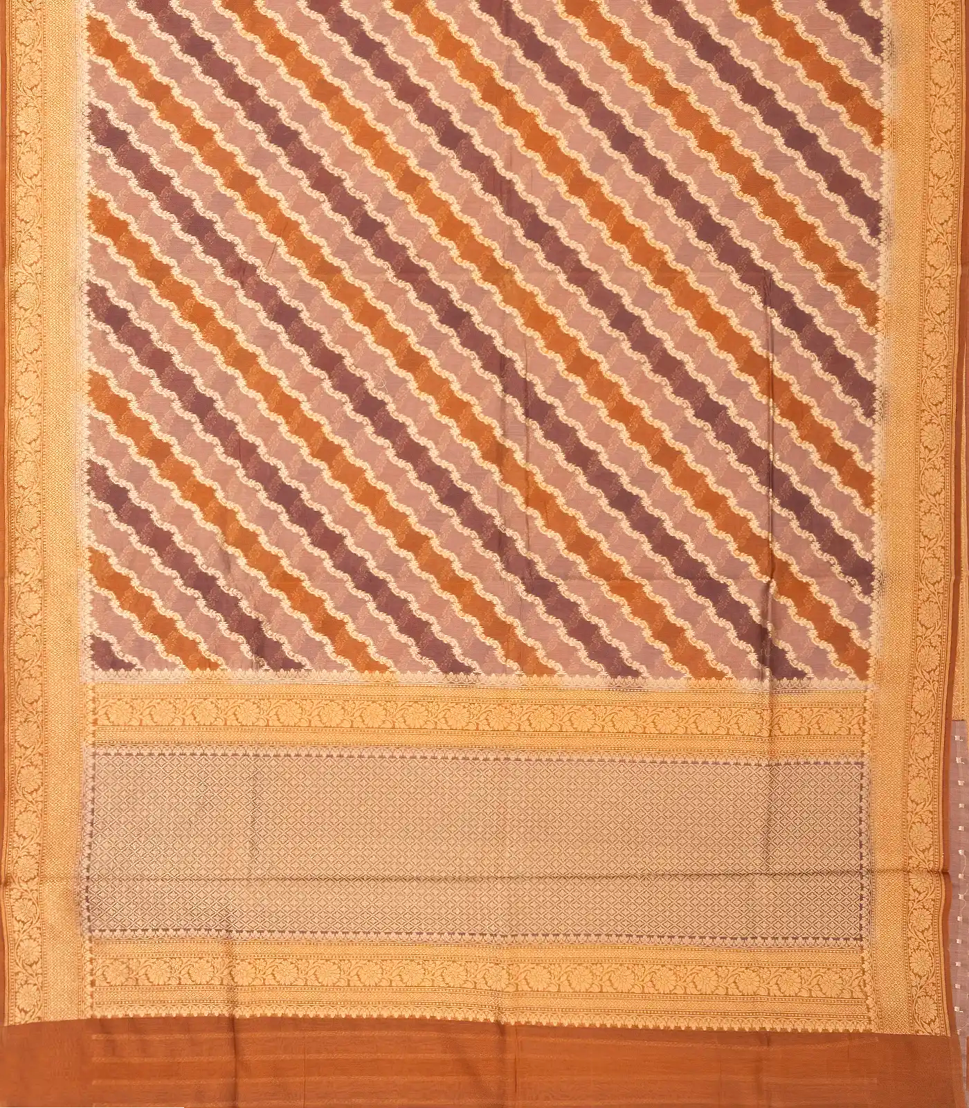 Multi Colour Handloom Banarasi Silk Cotton Saree With Diagonal Floral Motifs-BE1263