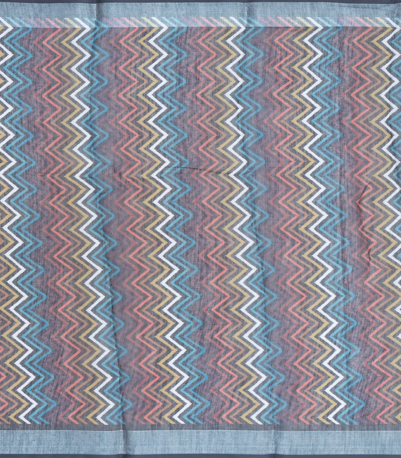 Multi Colour Woven Art Linen Saree With Printed Stripes-BL3960