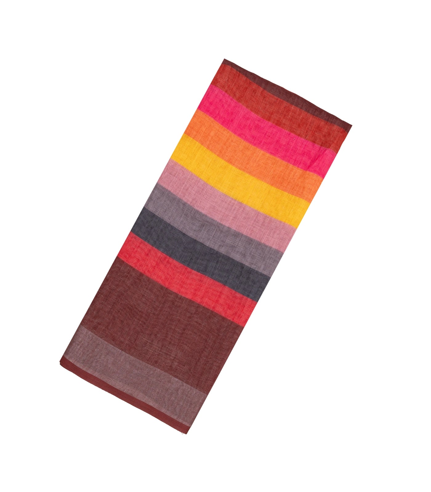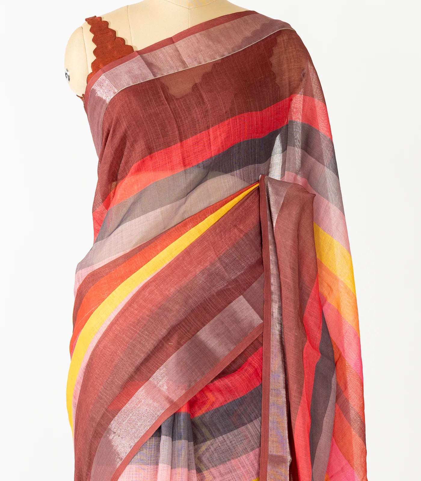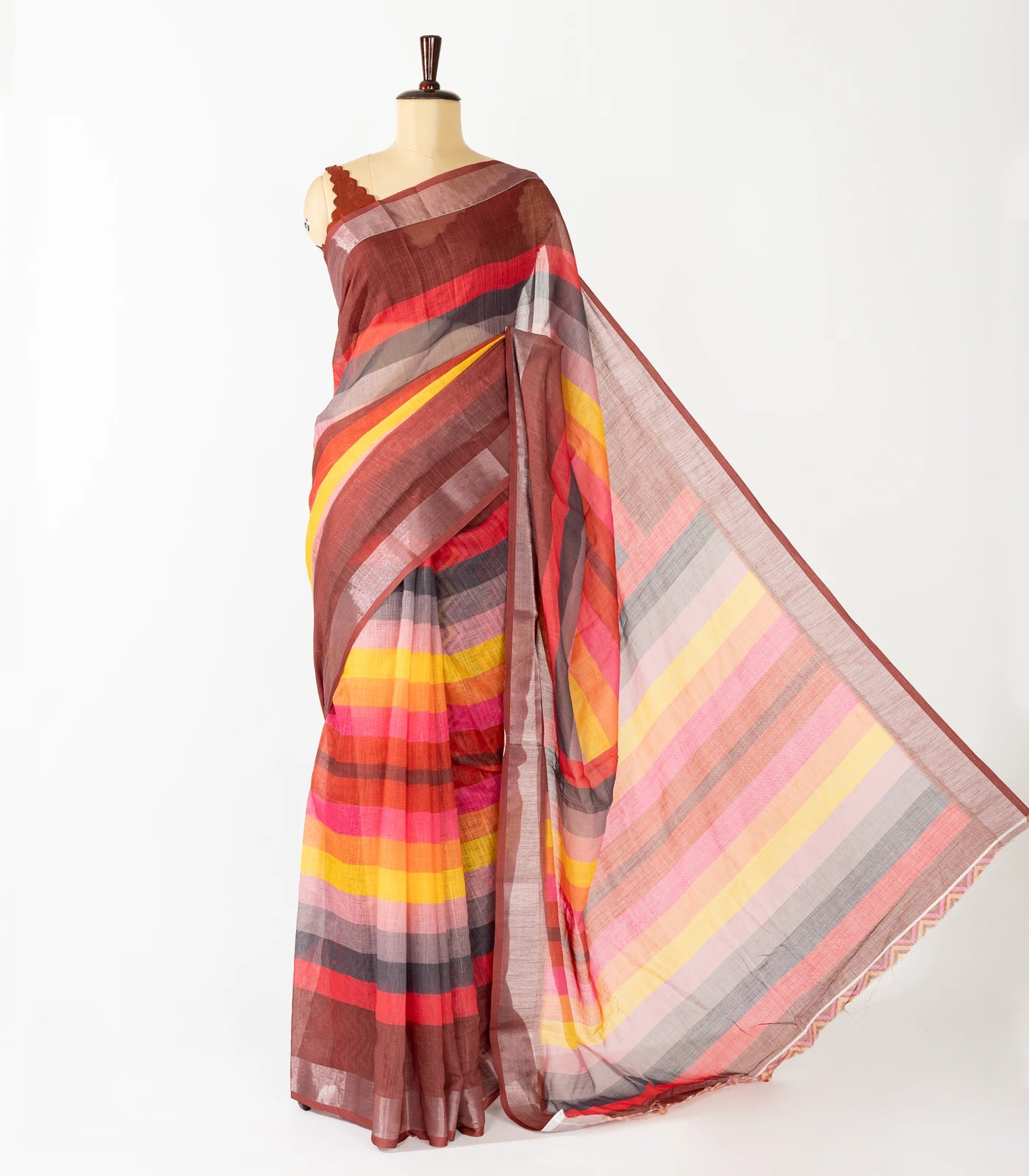 Multi Colour Woven Synthetic Linen Saree With Printed Stripes-BL4406