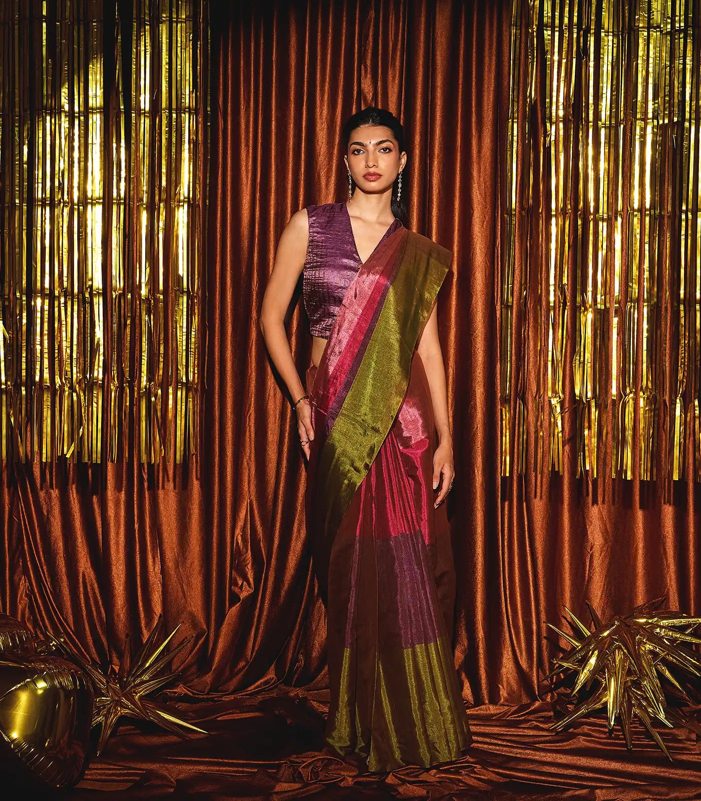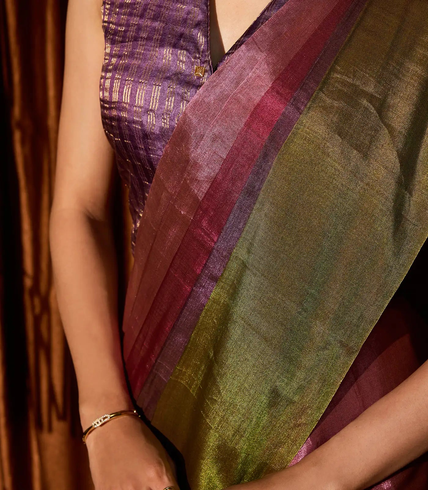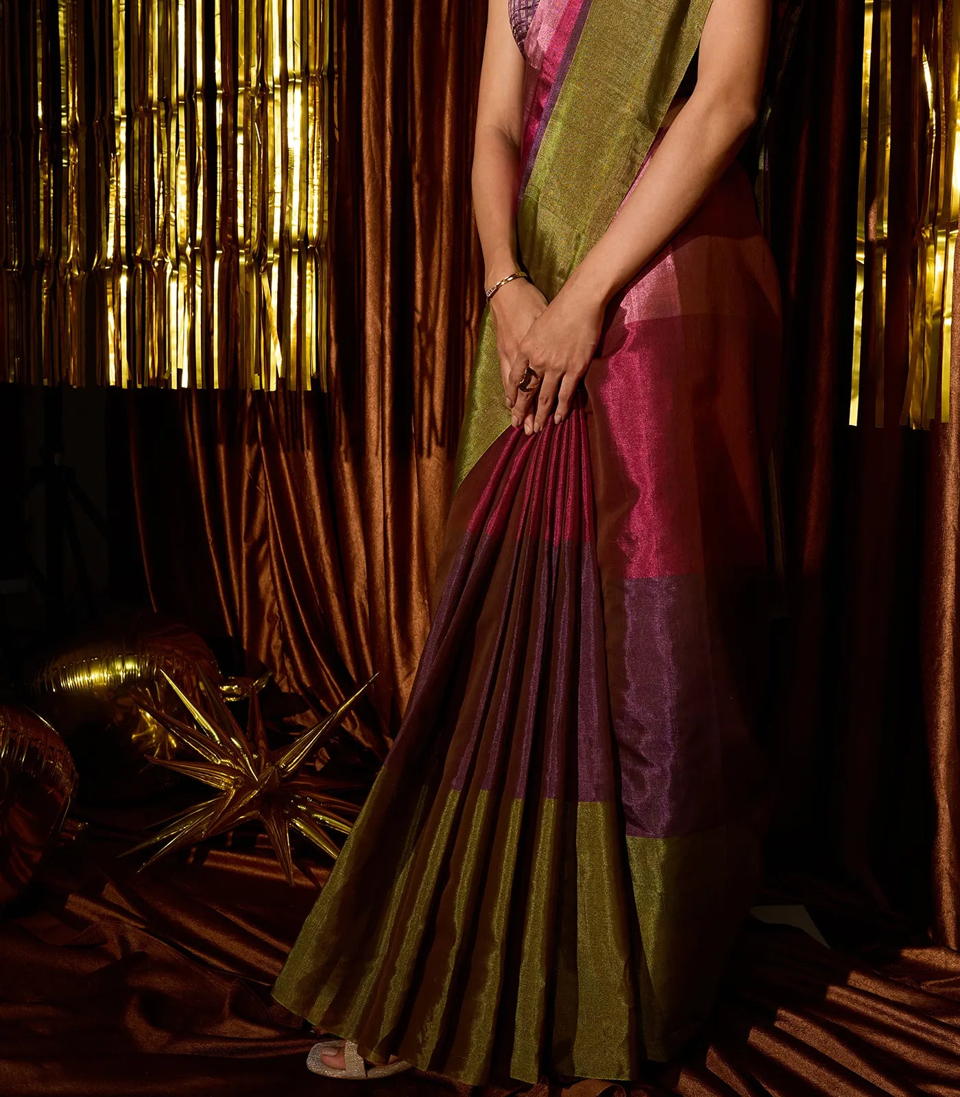 Multicolor Handloom Chanderi Cotton Tissue Saree With Stripes-CC1336