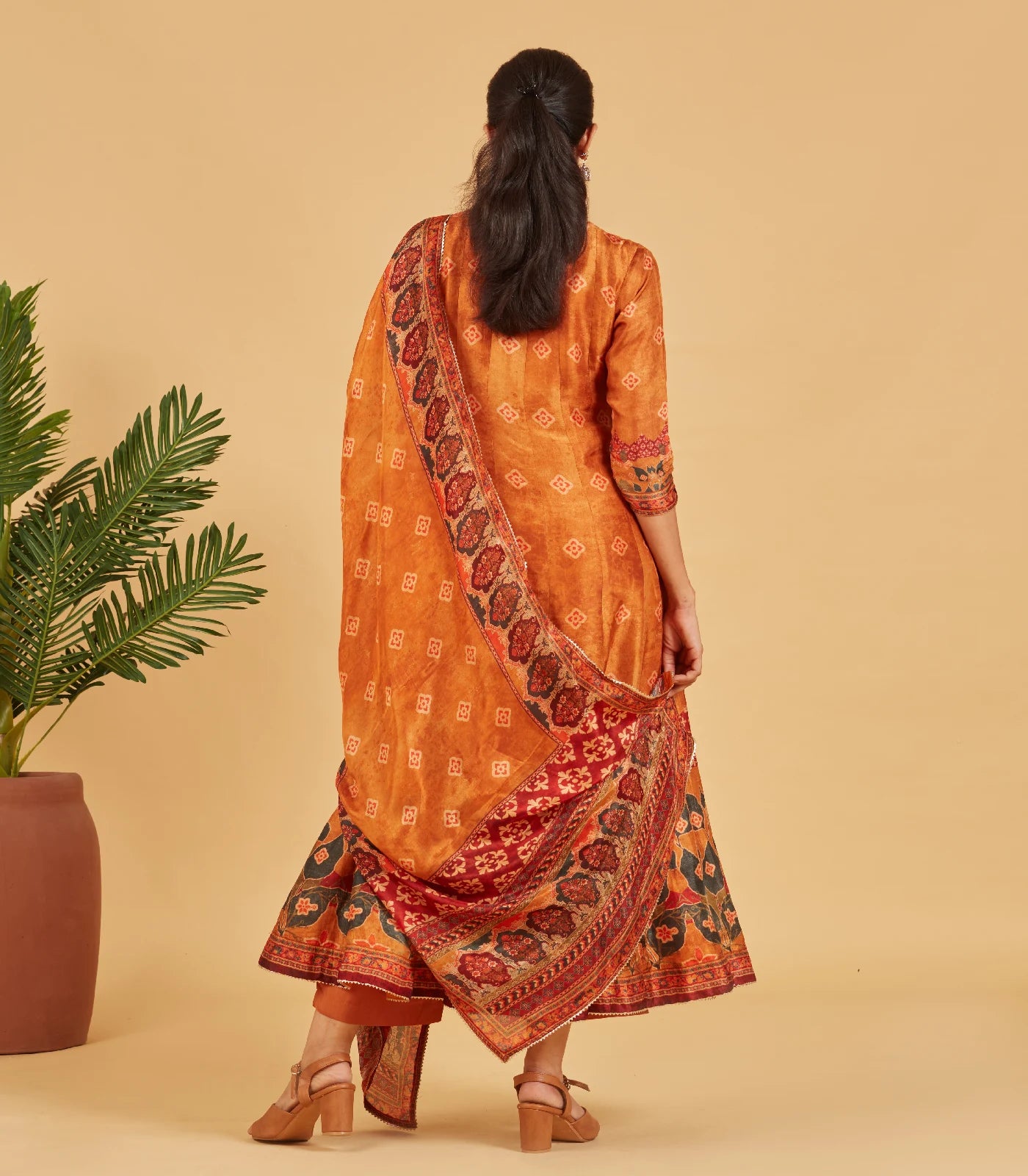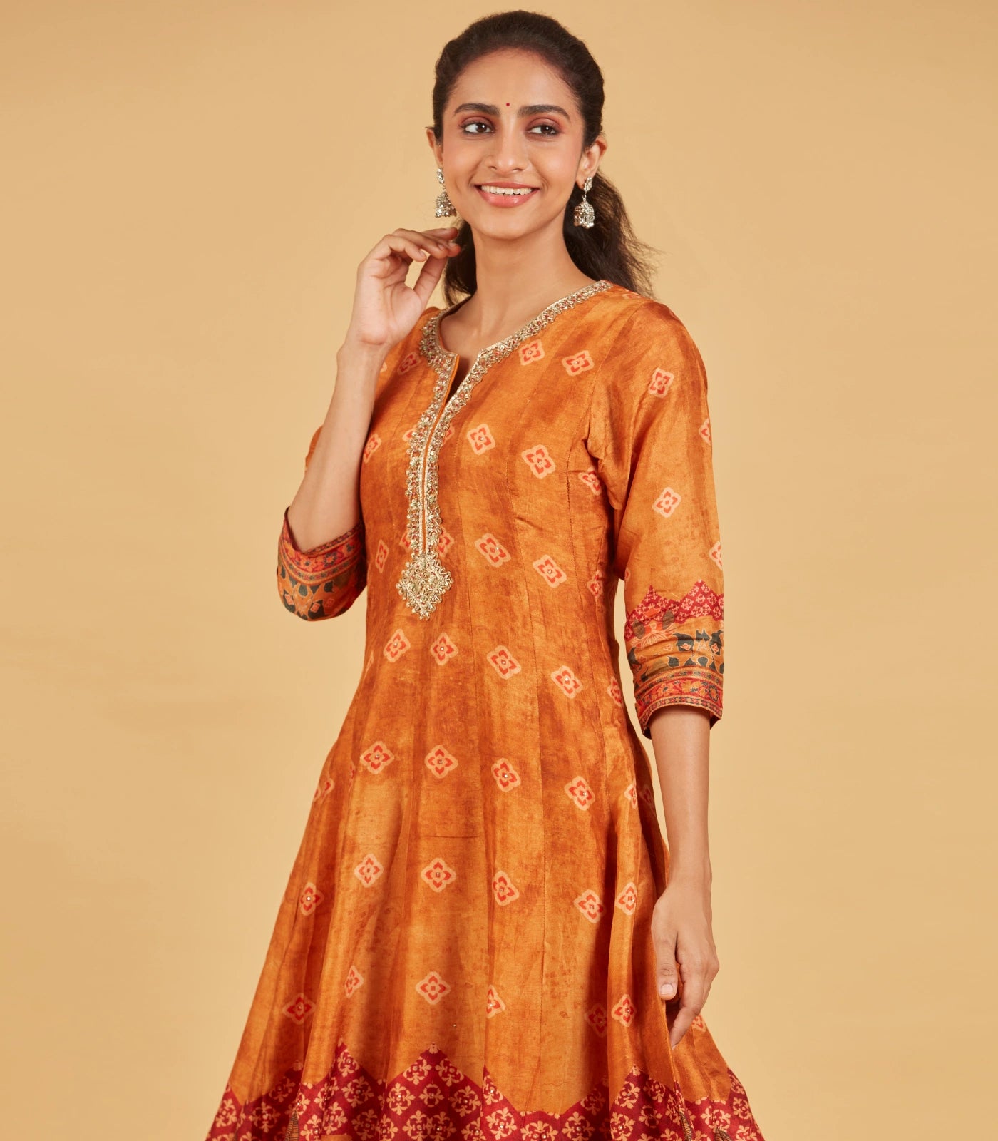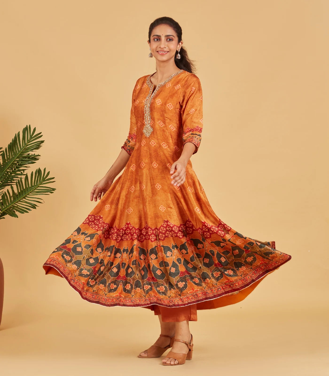 This ethereal mustard Anarkali set is a timeless masterpiece. The flowing Anarkali kurta, adorned with a unique motif, is a symphony of elegance and grace. Paired with chic straight cut pants and a delicate dupatta, this set is perfect for special occasions. The intricate detailing and vibrant colors make a bold statement.