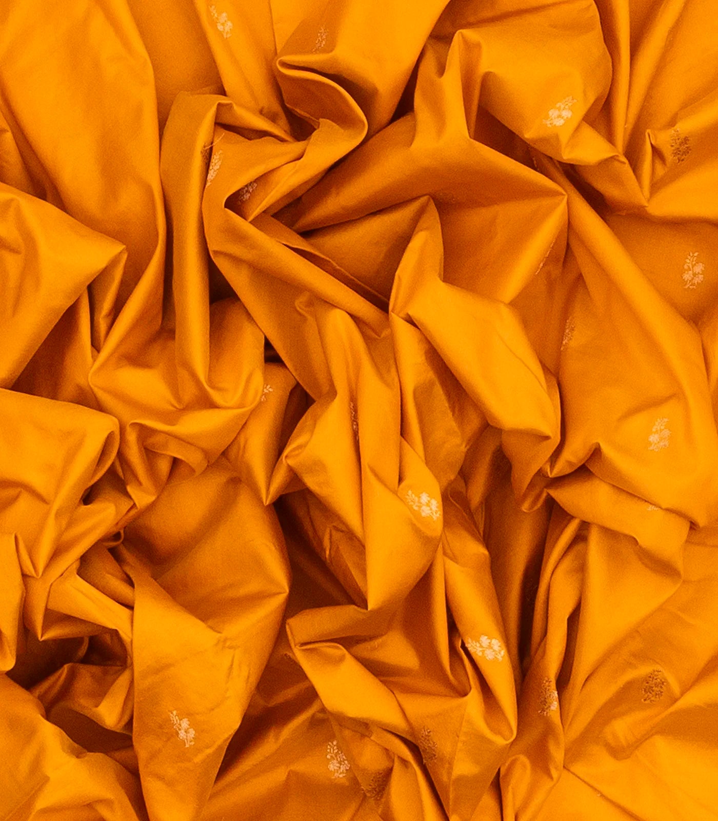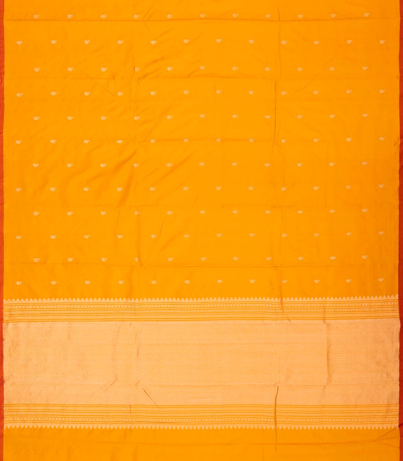 Mustard Handloom Banarasi Silk Saree With Floral Buttas-BE1223