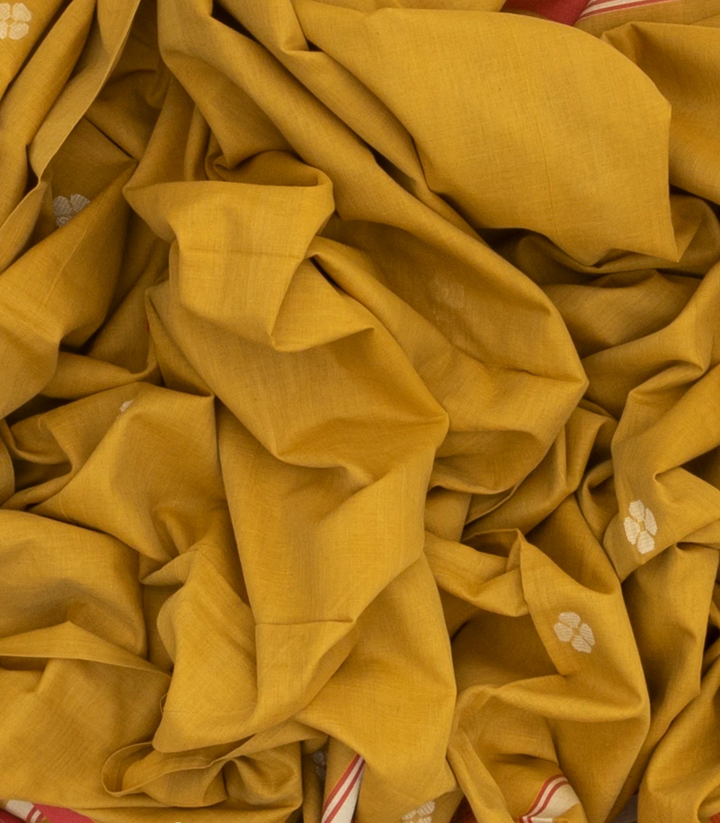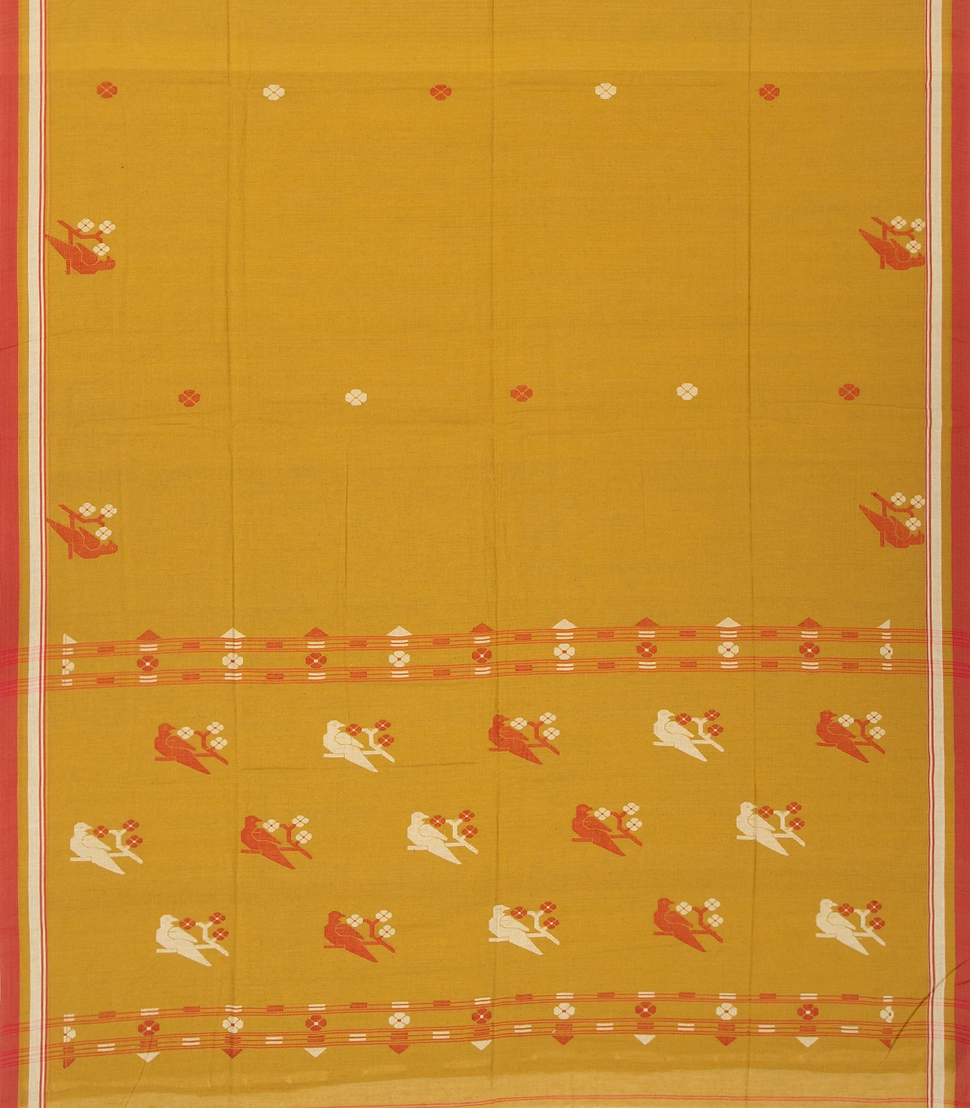 Mustard Handloom Bengal Cotton Saree With Bird Buttas-BG1392