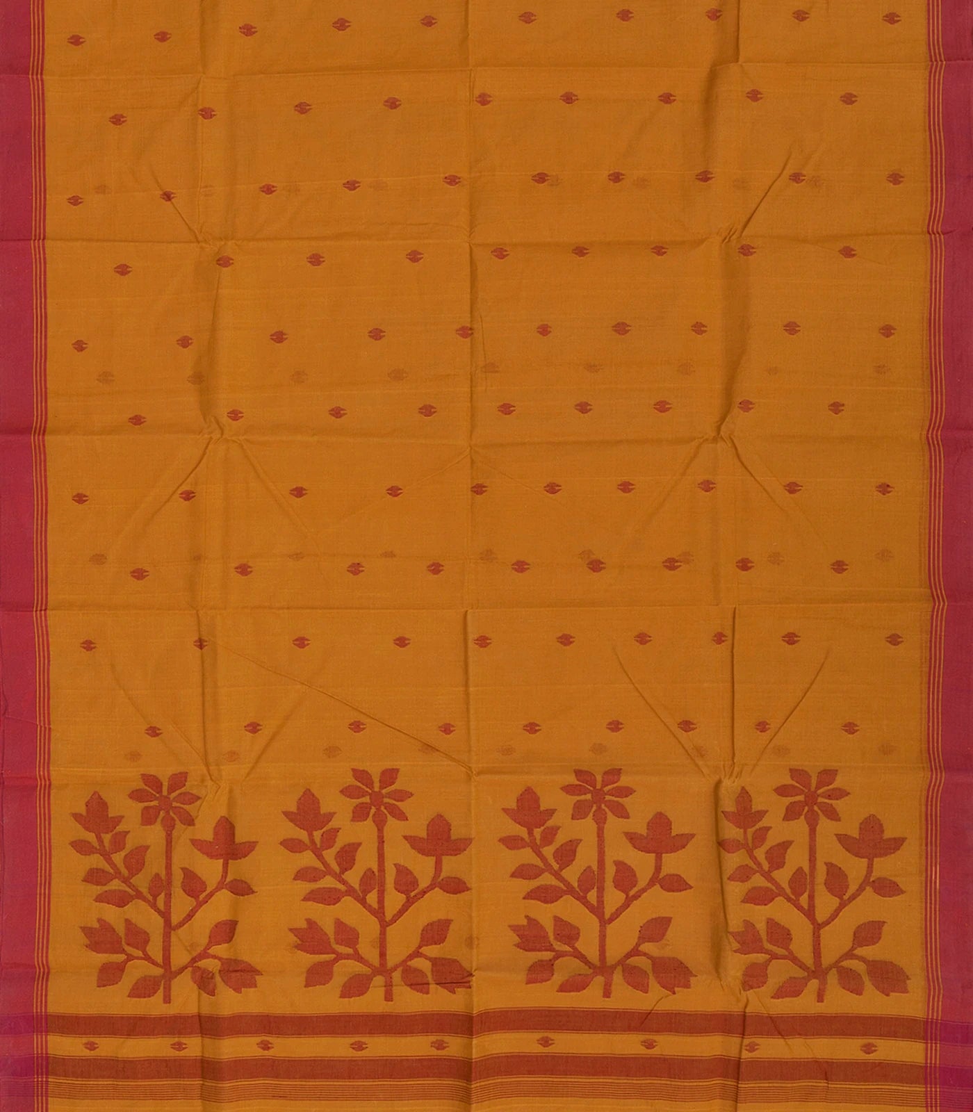Mustard Handloom Dhakai Cotton Saree With Floral Pallu-Mustard