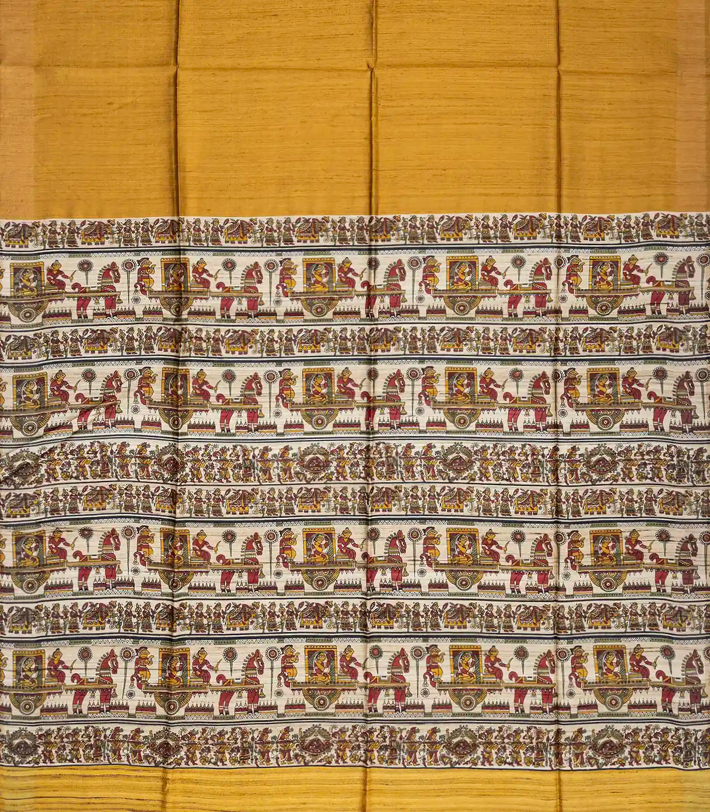 Mustard Handloom Dupion Silk Saree With Printed Pallu-DS0490