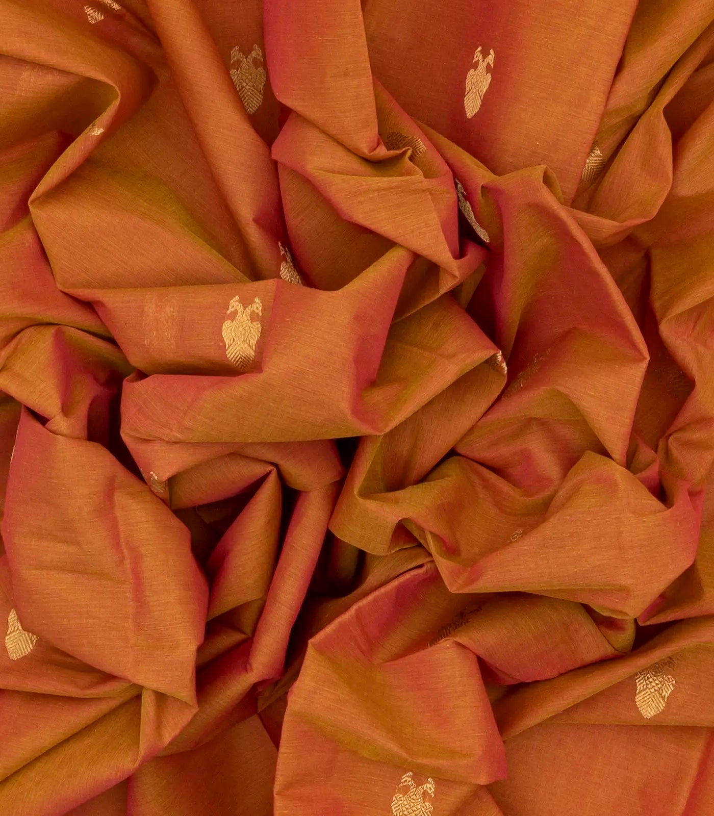 Mustard Handloom Kanchi Cotton Saree With Gandaberunda Buttas
