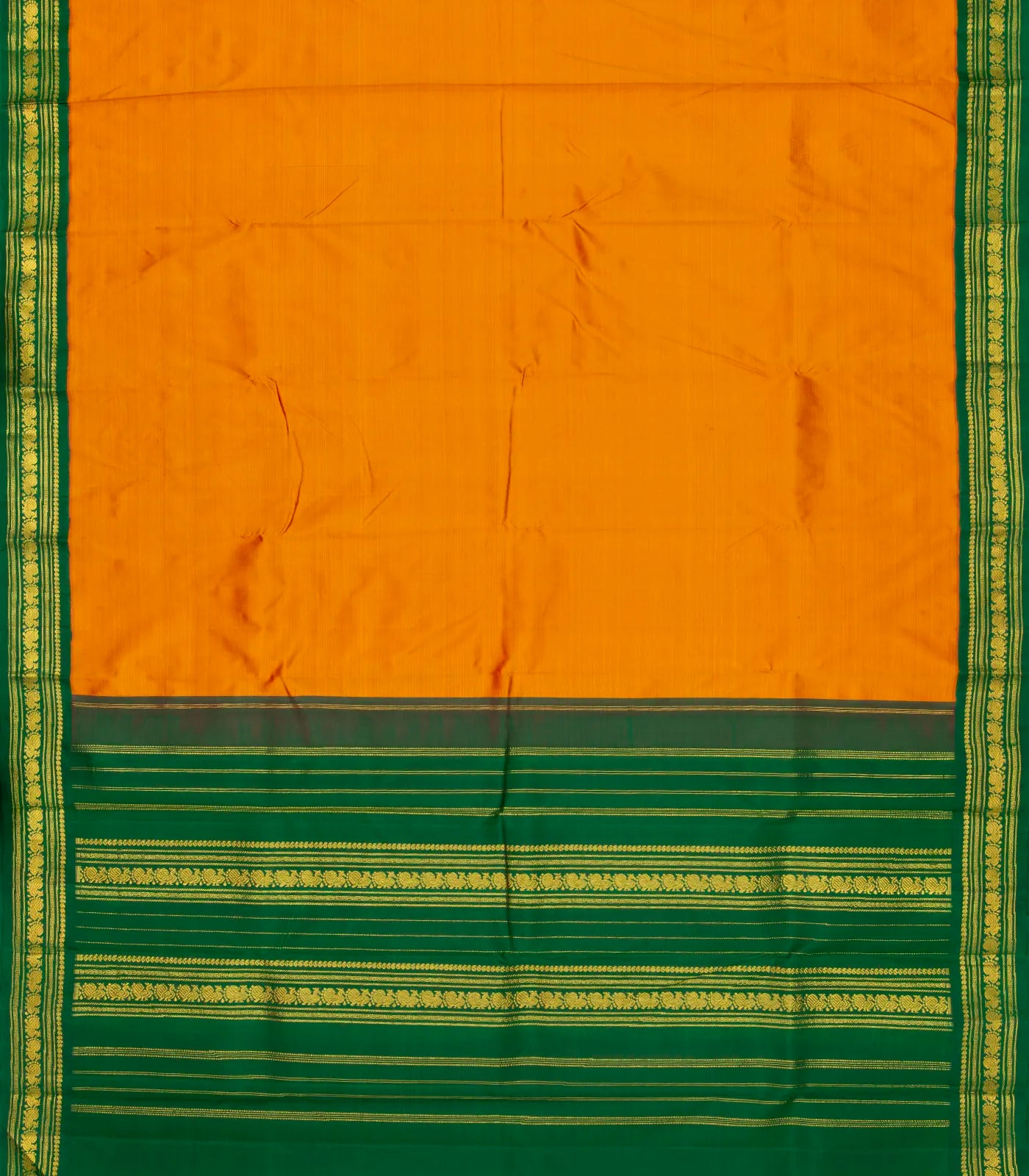 Mustard Handloom Korvai Kanchipuram Silk Saree With Green Border