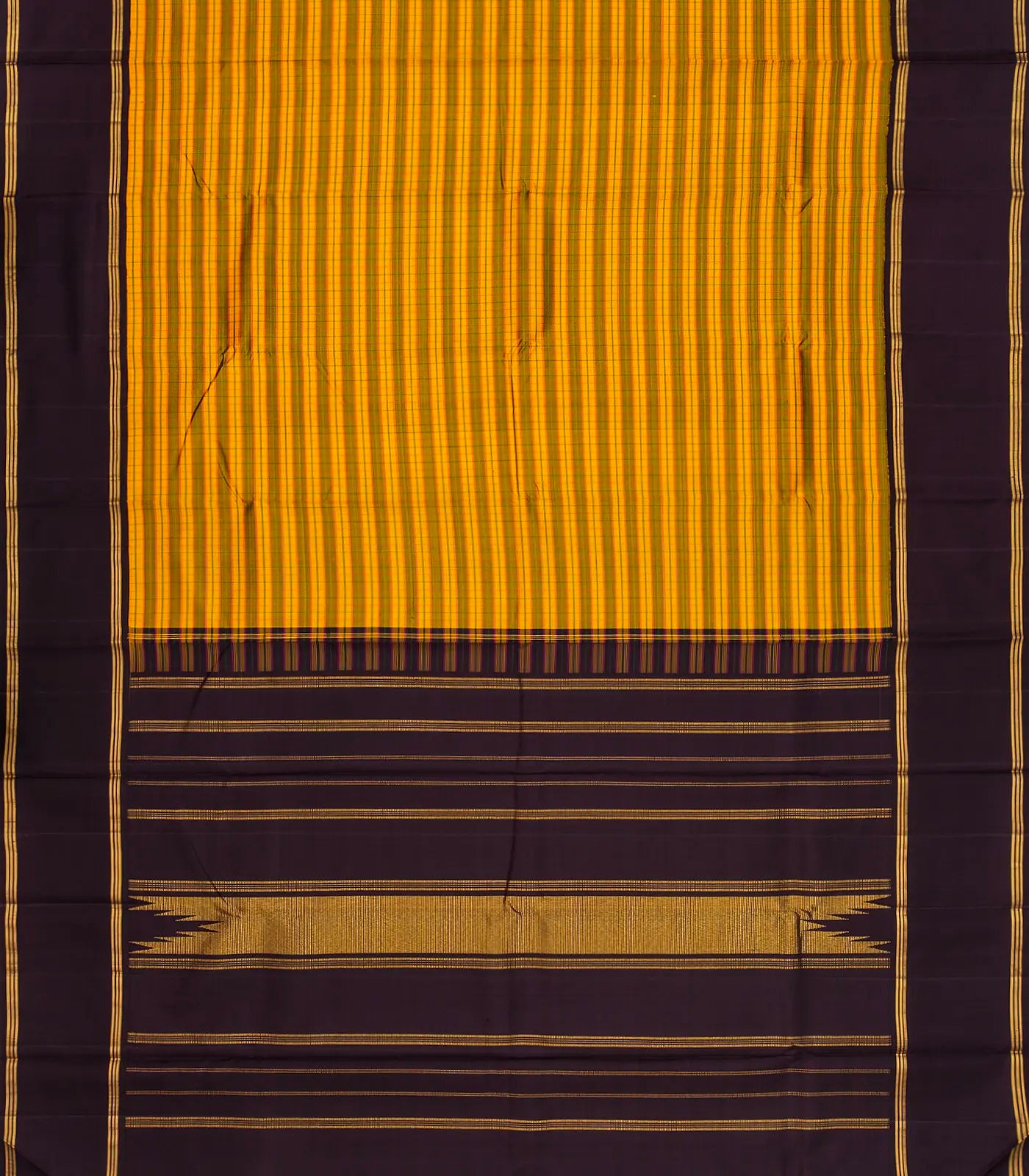 Mustard Handloom Korvai Kanchipuram Silk Saree With Stripes-KA12613