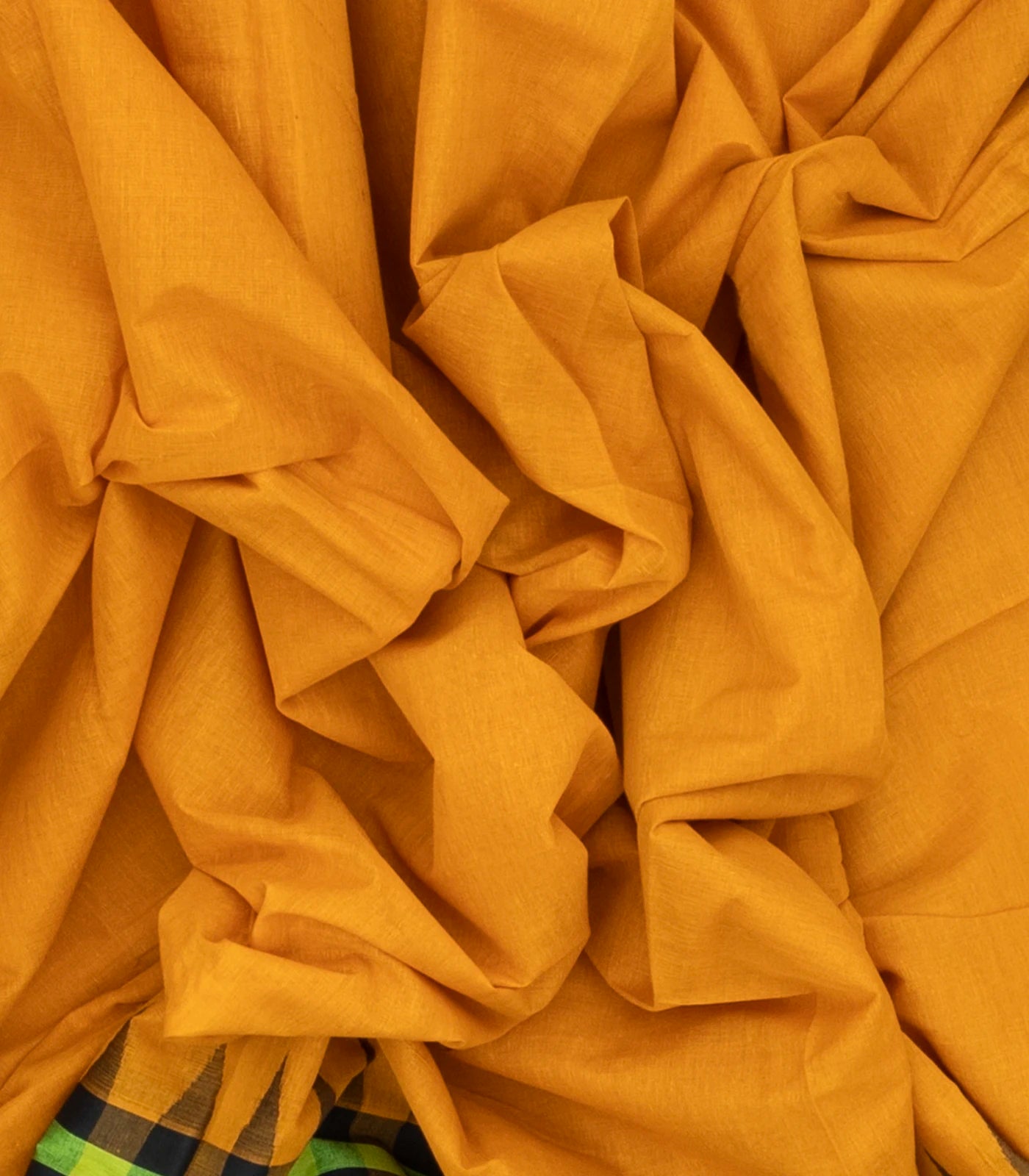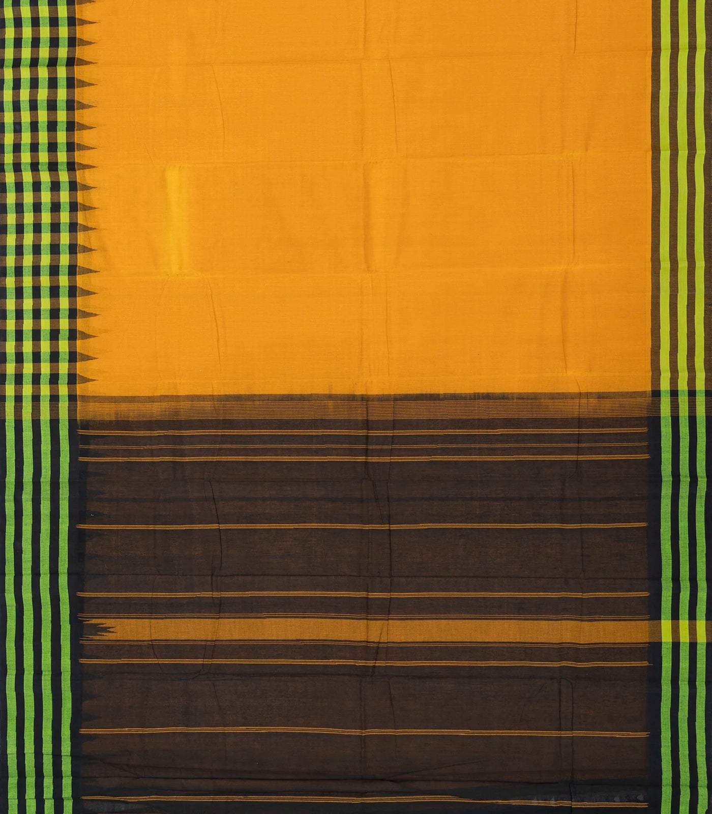 Mustard Handloom Rasipuram Cotton Saree With Contrast Checked Border-RA2374