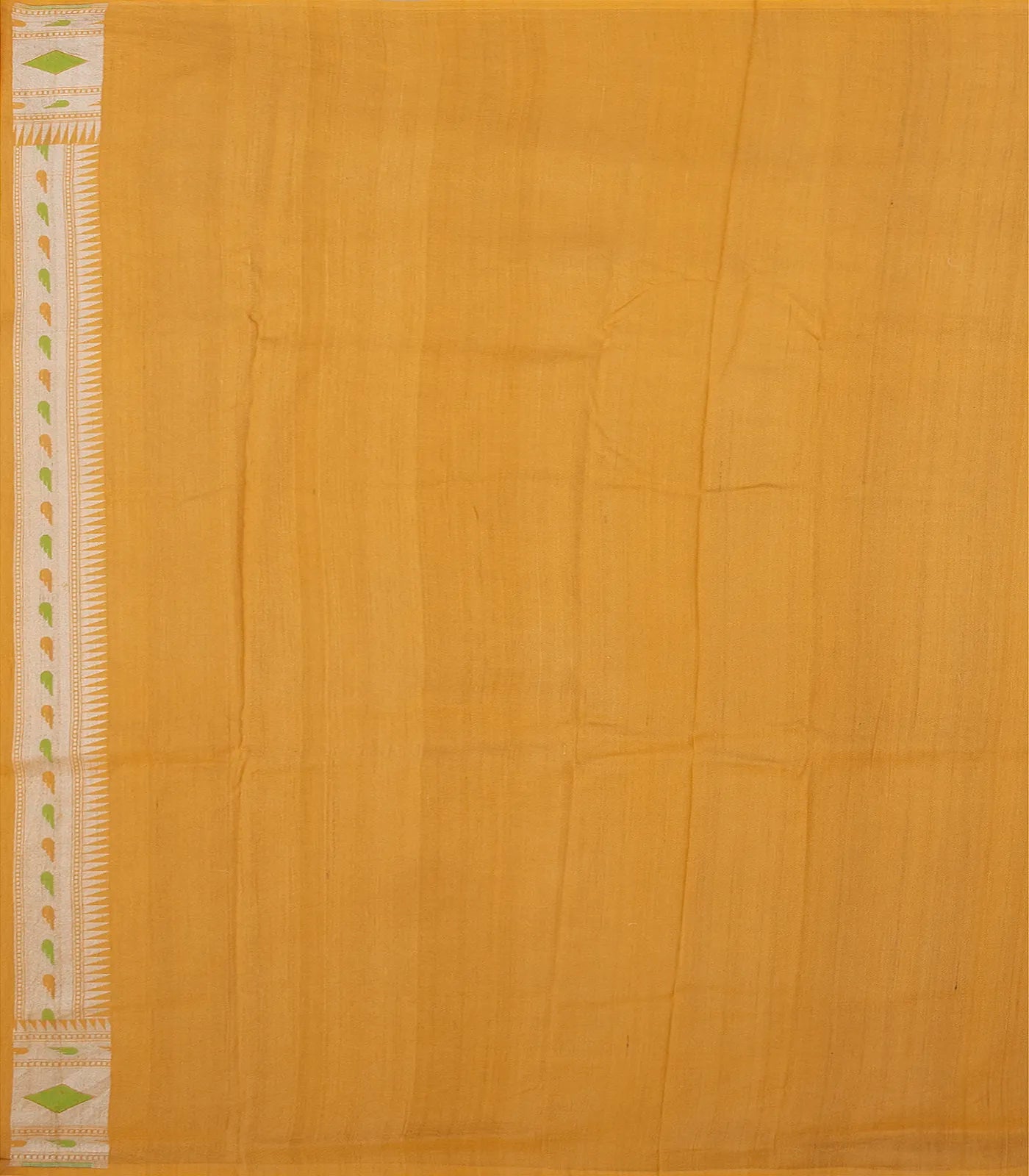 Mustard Handloom Tussar Silk Saree With Meena Border-Mustard