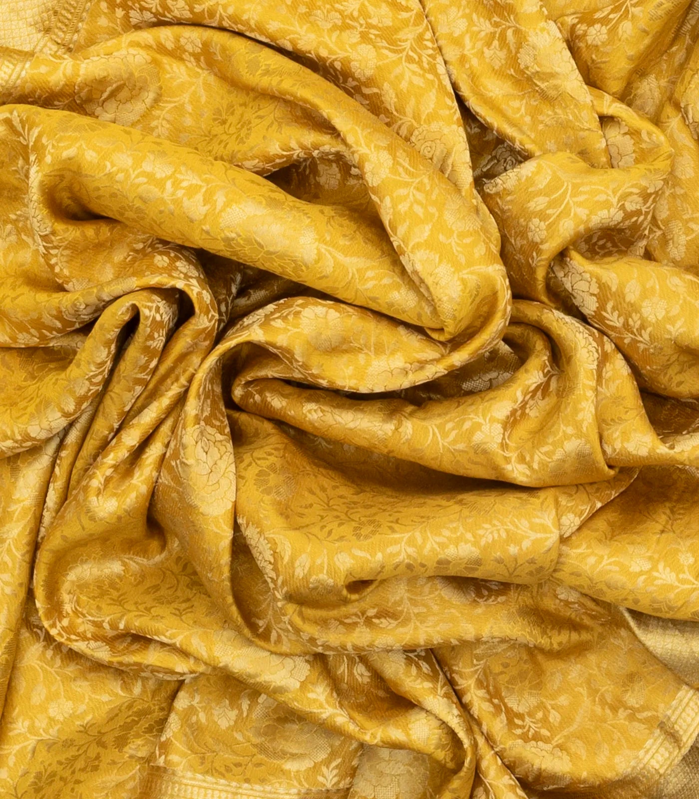 Mustard Mysore Crepe Silk Saree With Floral Vine Motifs-MS3098