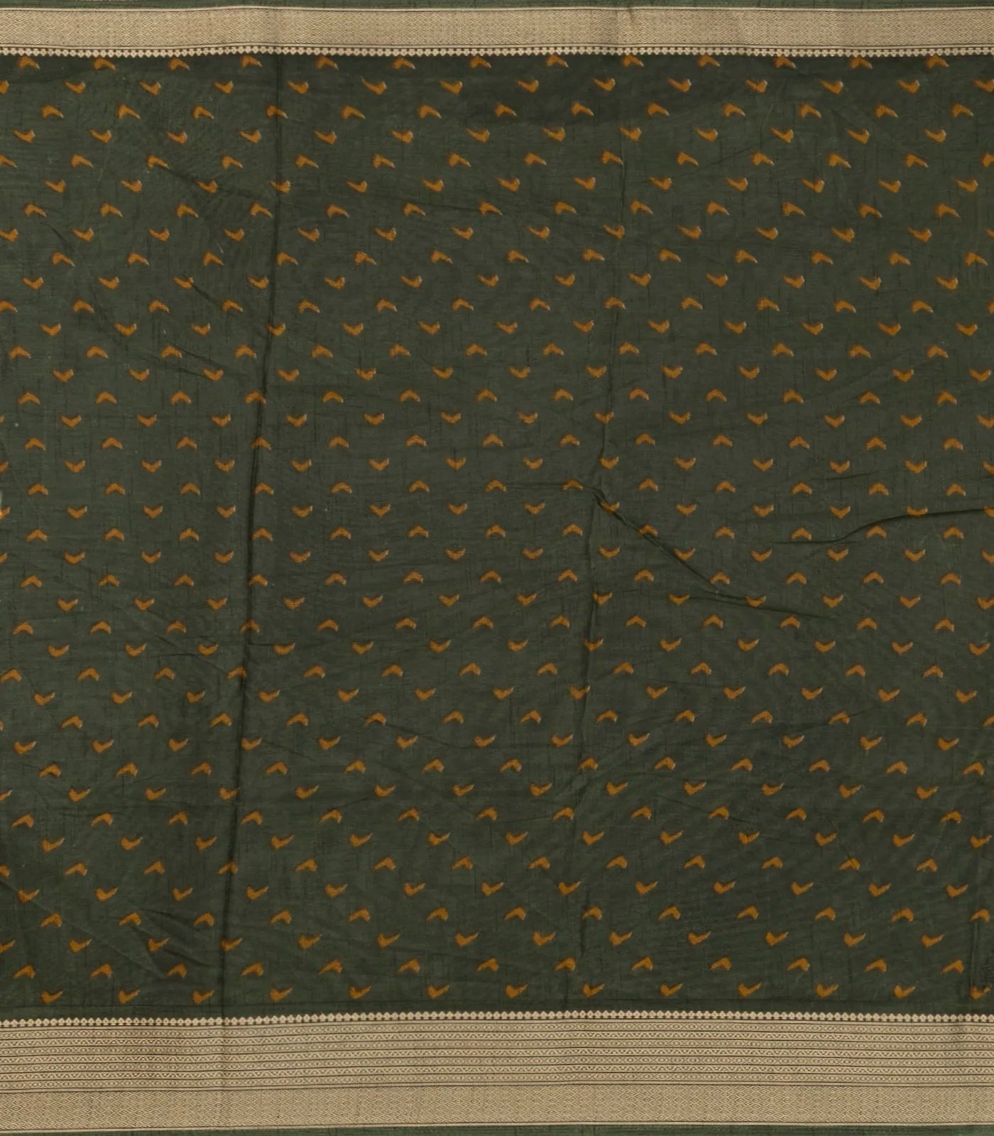 Mustard Printed Art Tussar Saree With Zari Border-BL5098