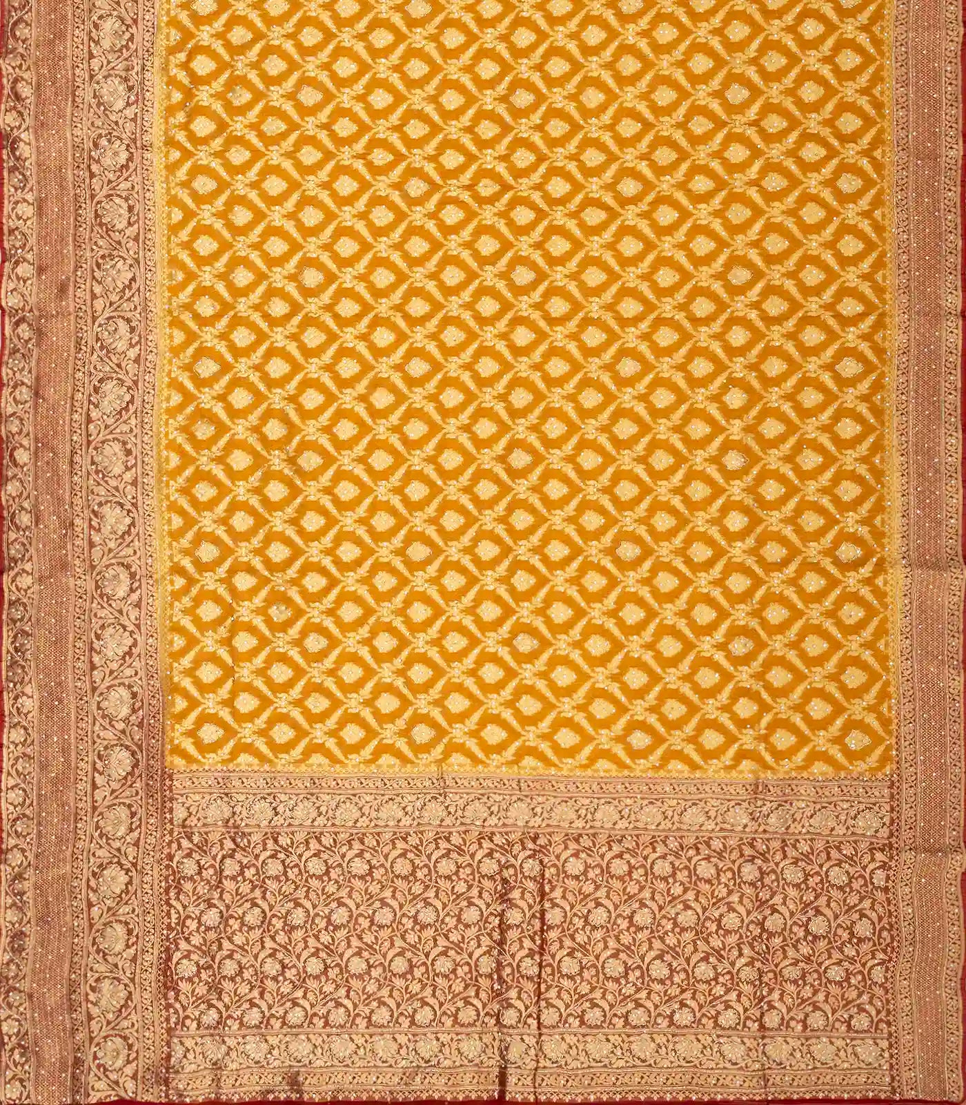 Mustard Woven Banaras Khadi Georgette Saree With Floral Jaal Motifs-BE1235