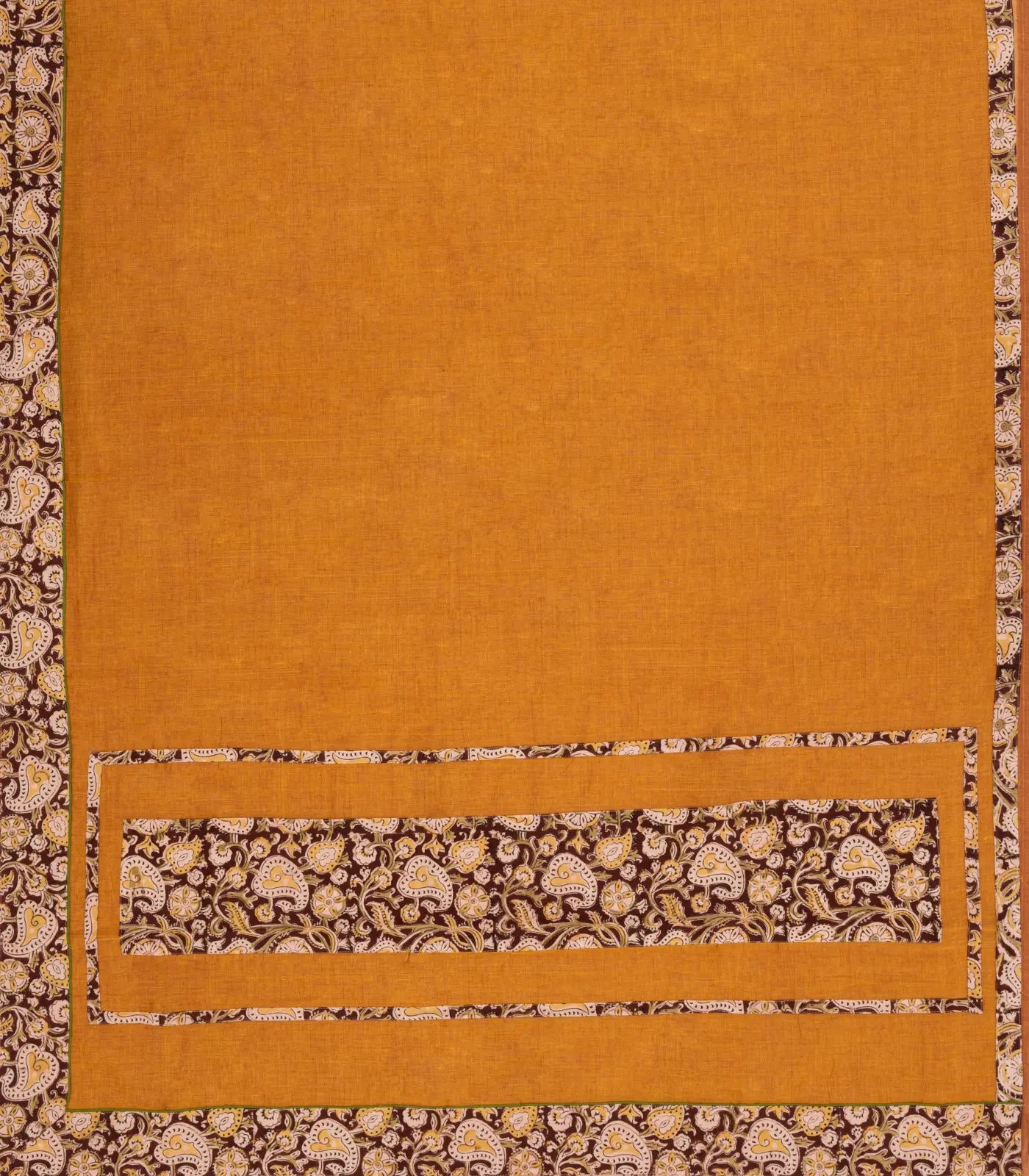 This woven chirala cotton saree is filled with plain mustard body along with printed border and pallu