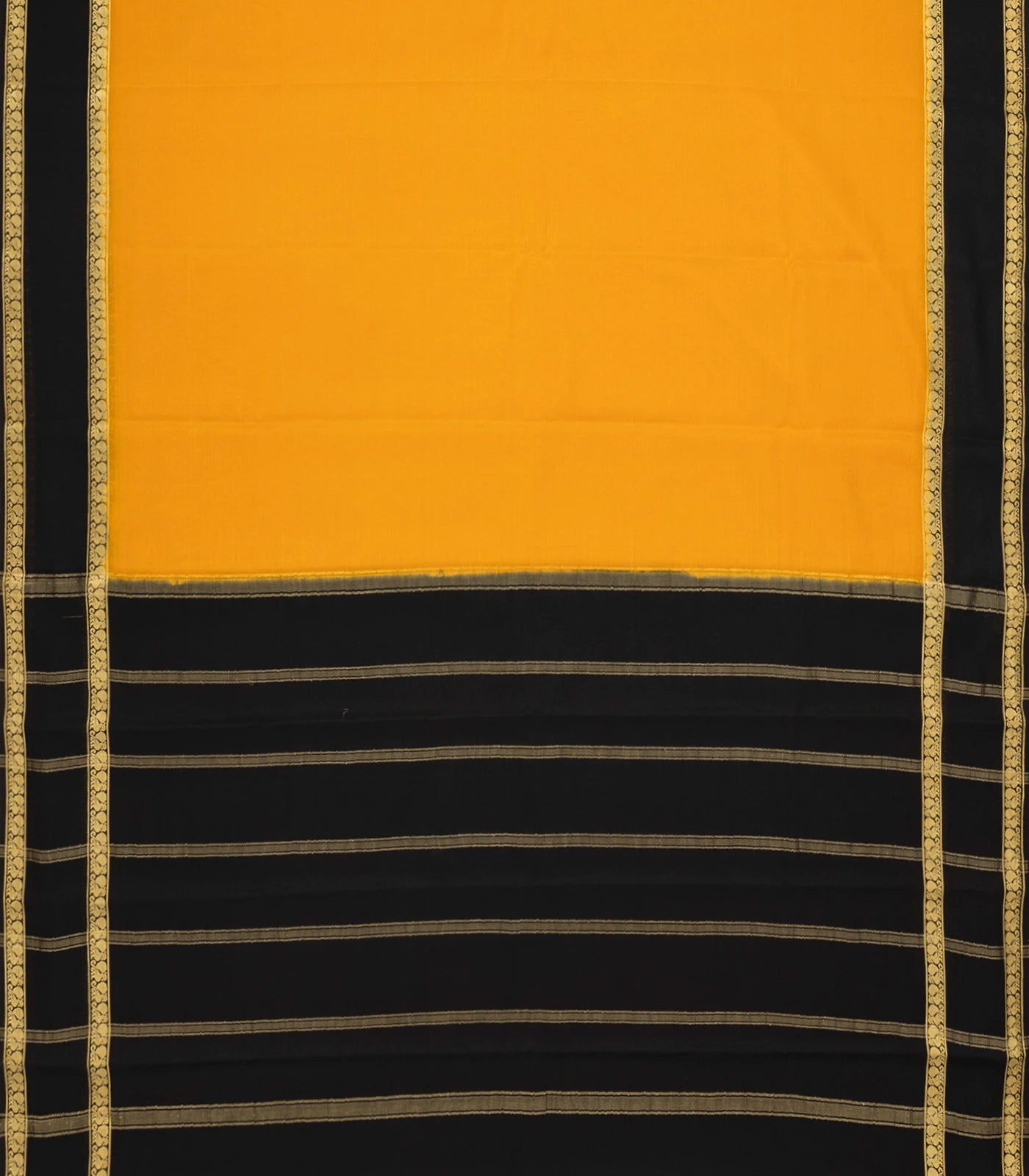 Mustard Woven Mysore Crepe Silk Saree With Black Border-MS3181