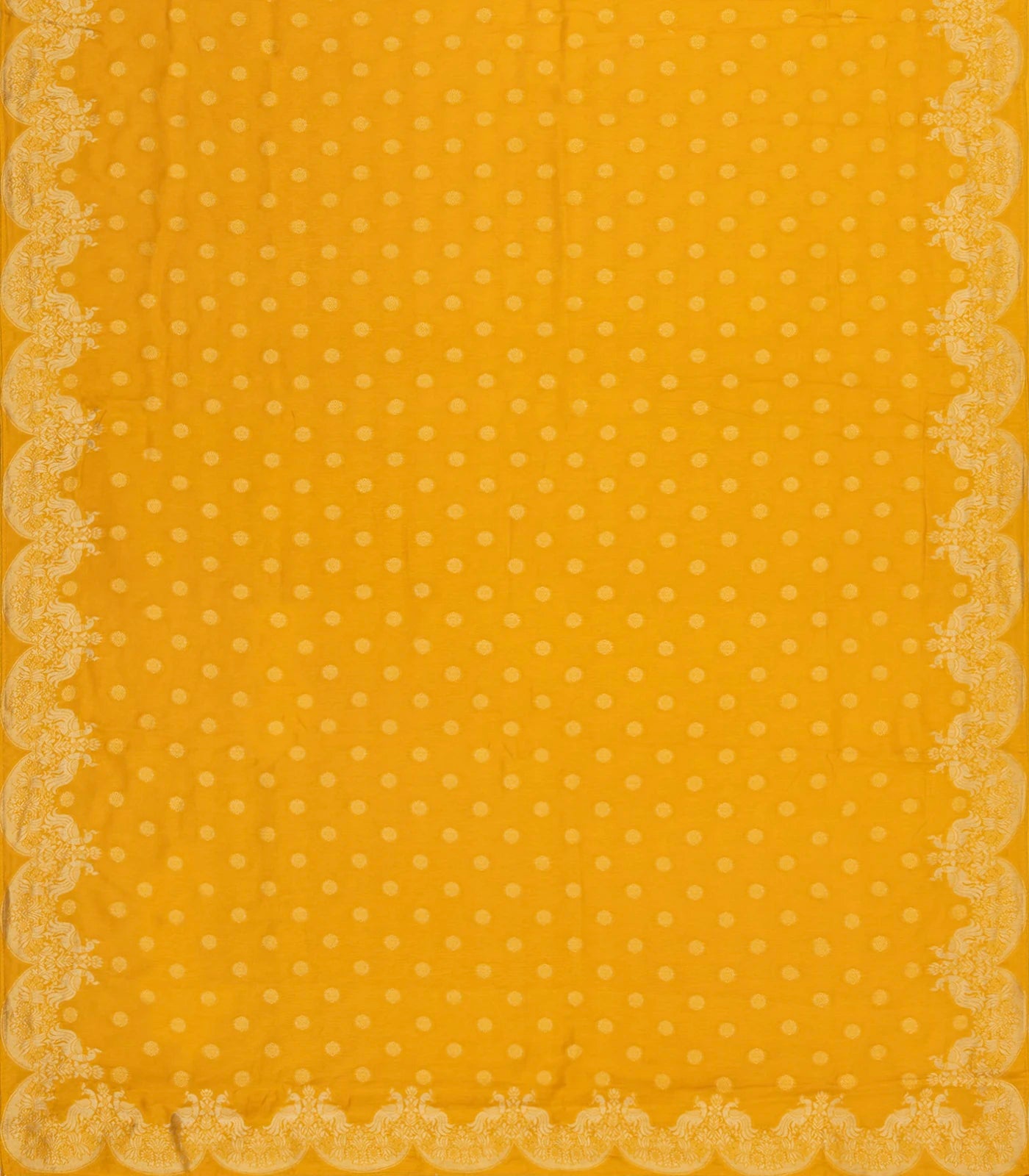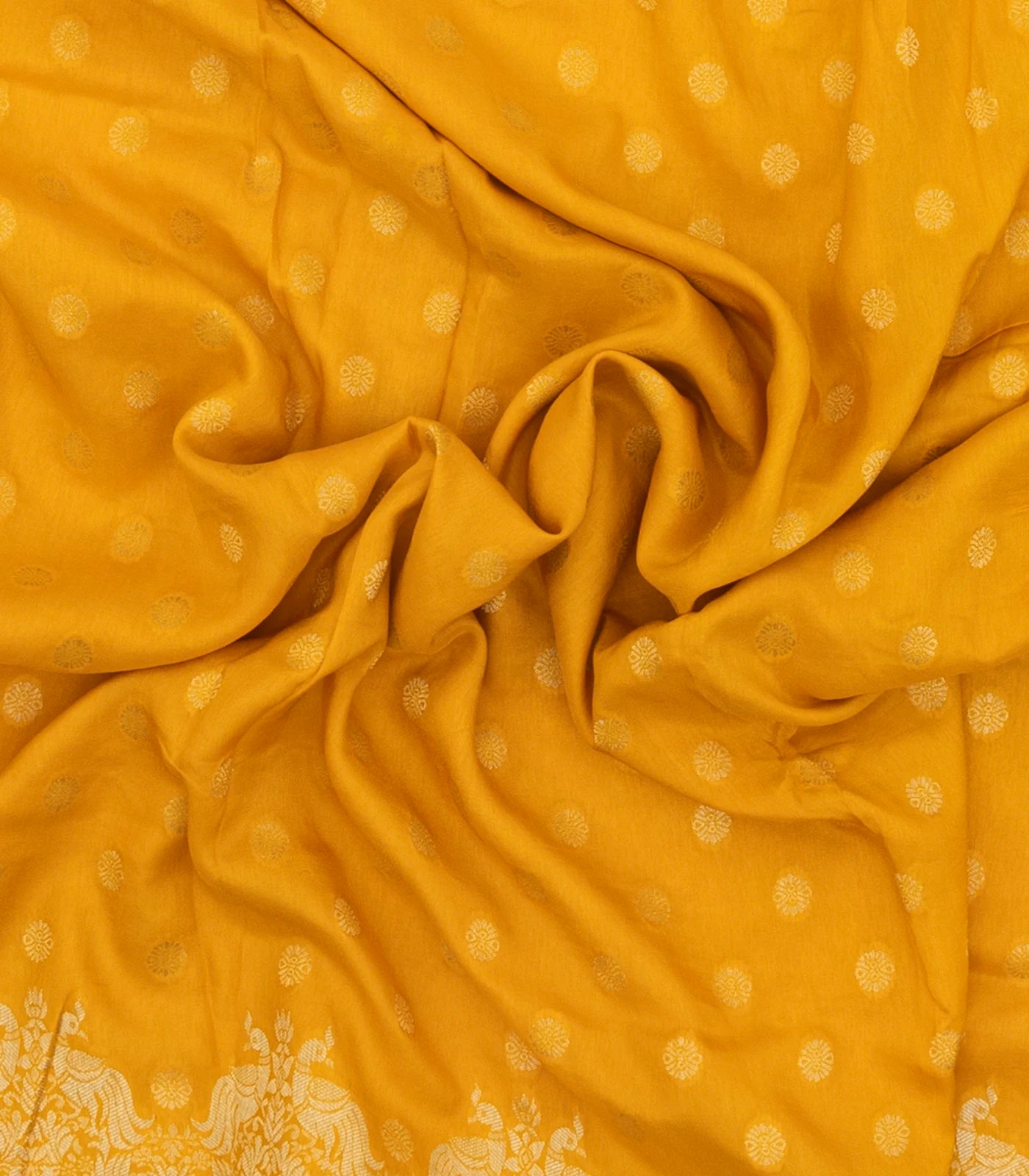 This woven synthetic viscose saree is filled with floral motifs in mustard body along with border and pallu