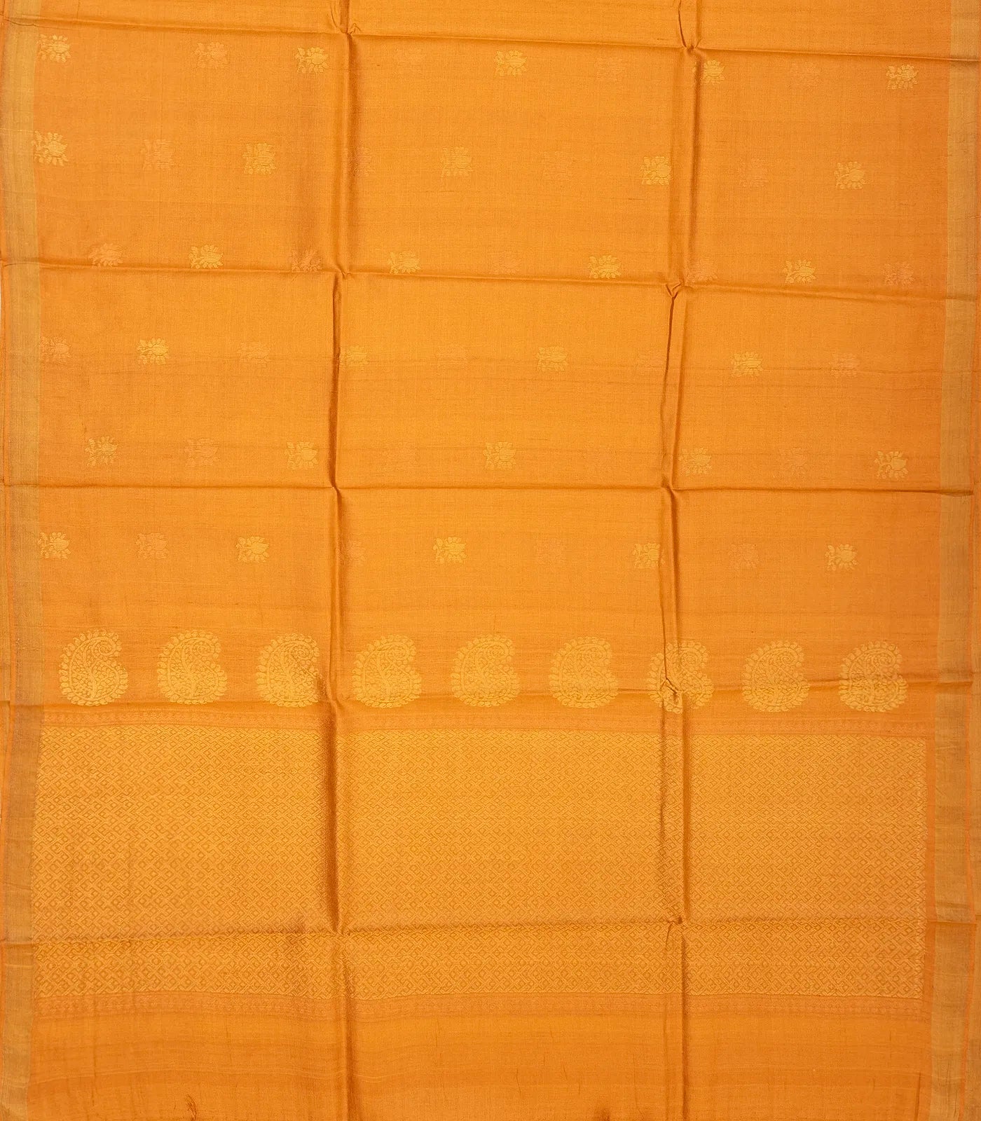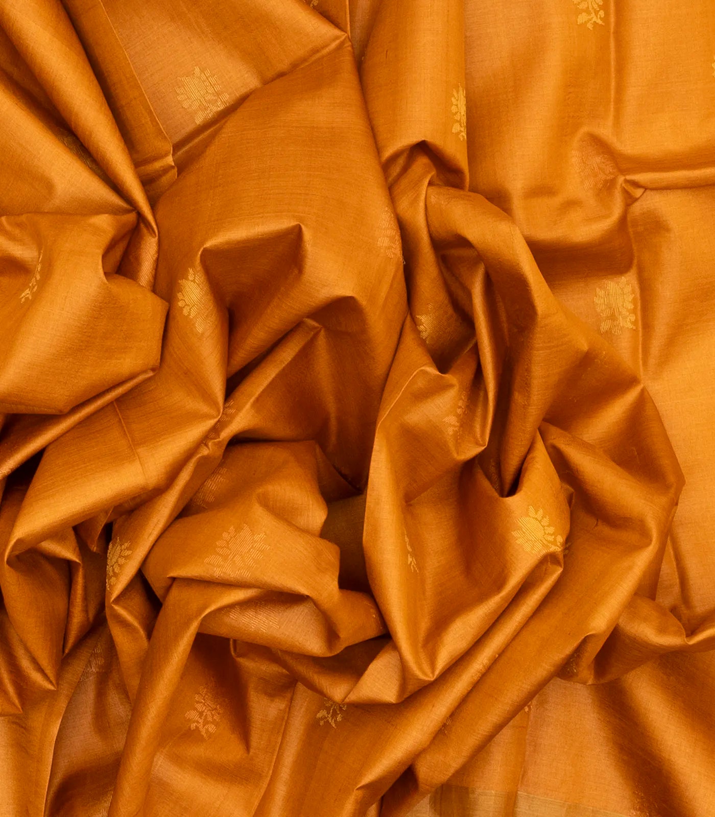 This woven tussar silk saree is filled with floral motifs in mustard body along with border and pallu
