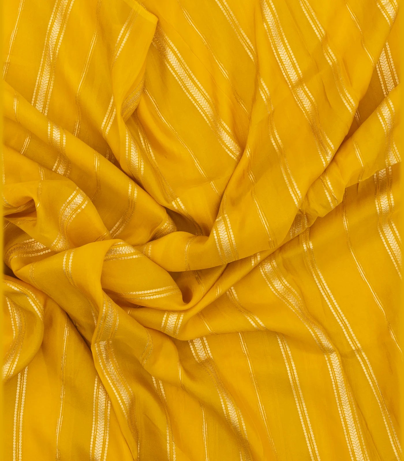 This woven art viscose saree is filled with zari stripes in mustard & yellow body along with pallu