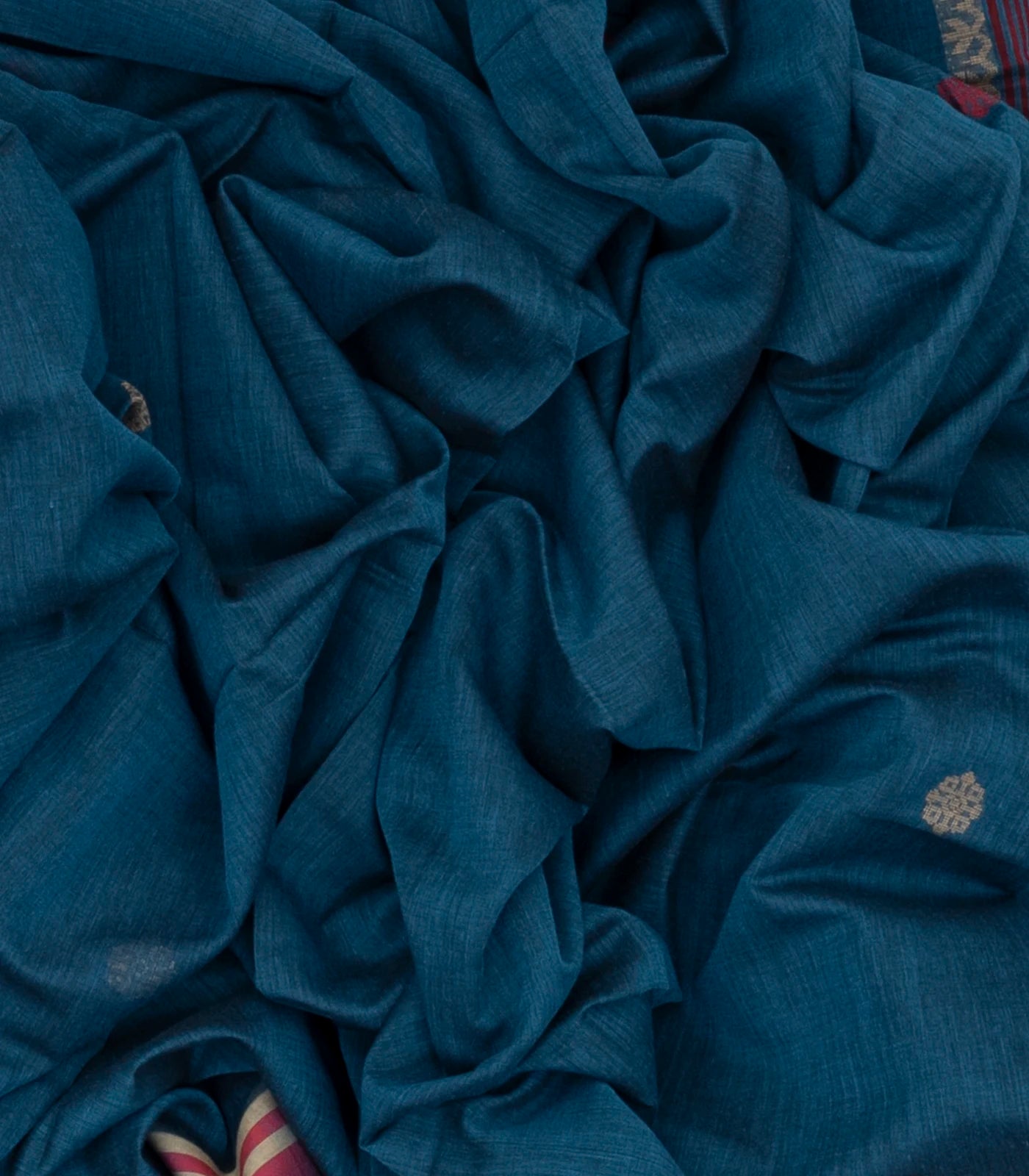 Navy Blue Handloom Bengal Cotton Saree With Buttas & Floral Pallu-BG1355