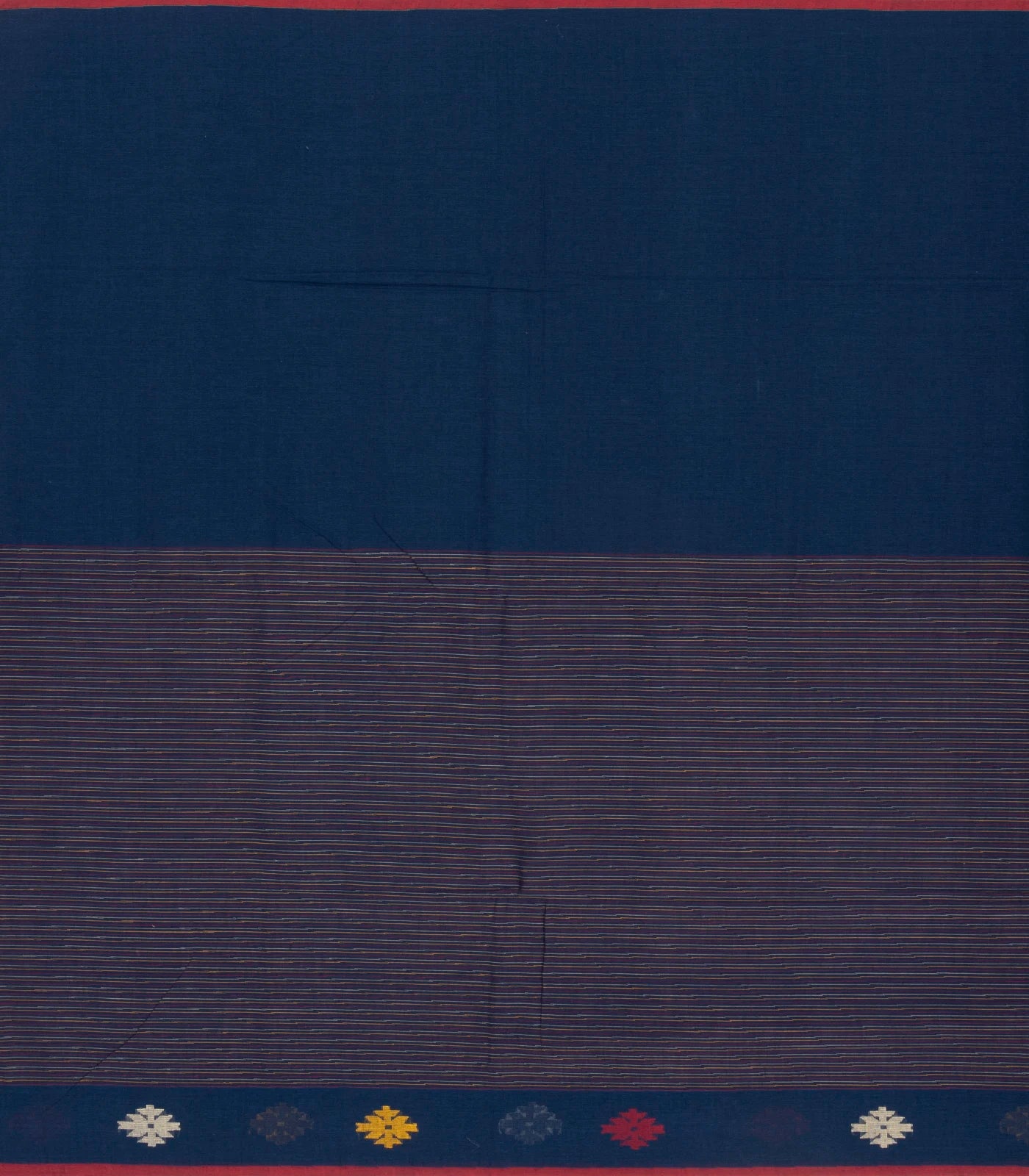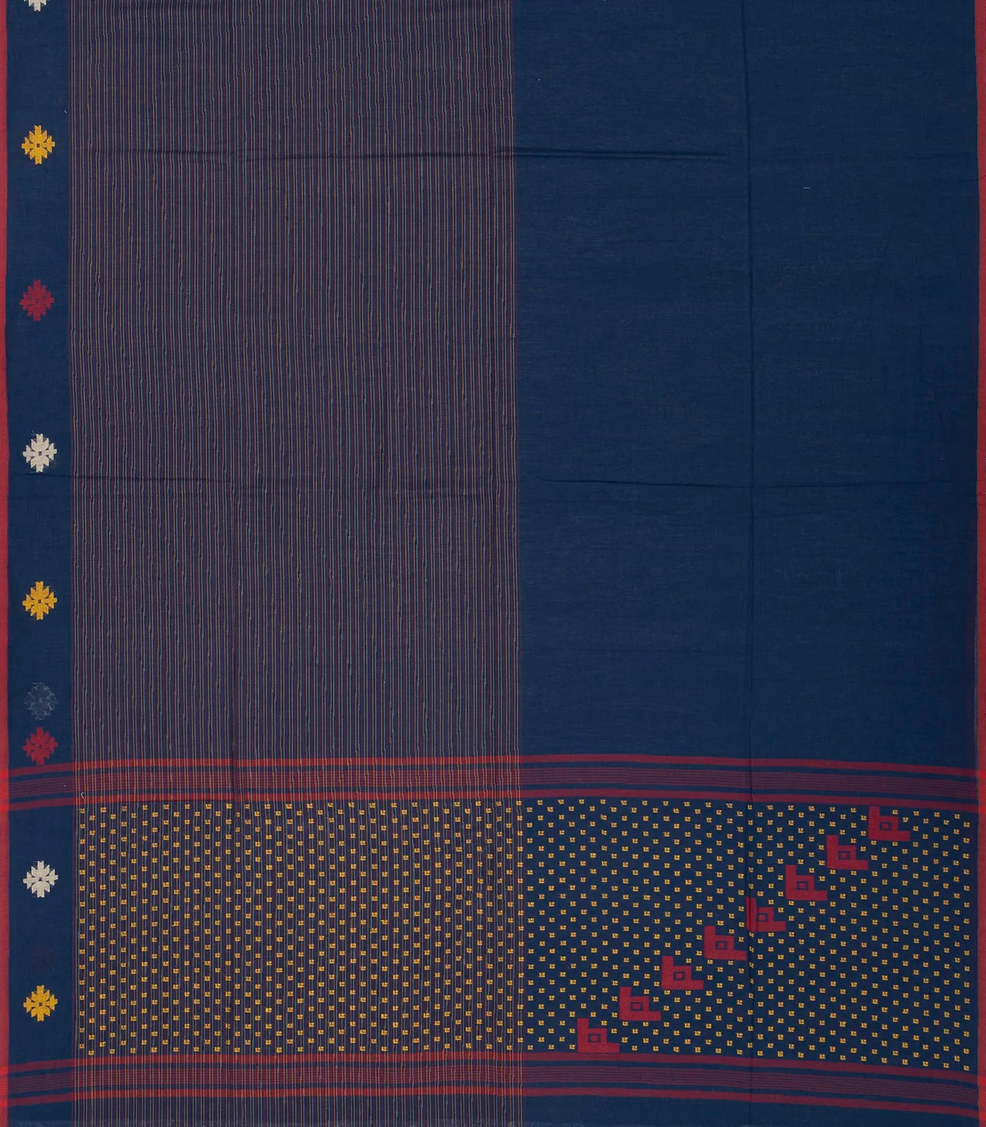 Navy Blue Handloom Bengal Cotton Saree With Stripes-BG1389