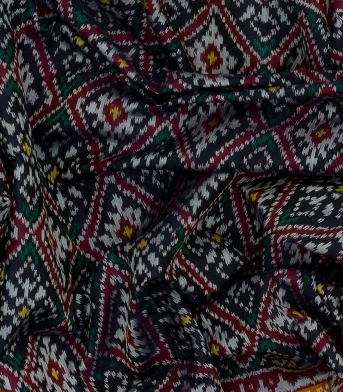 Navy Blue Handloom Ikat Silk Saree With Floral Motifs-Navy Blue