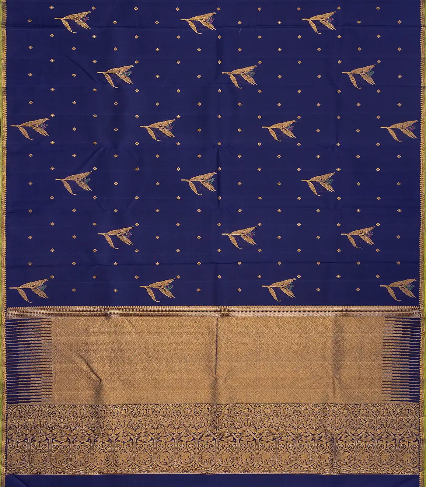 Navy Blue Handloom Kanchipuram Silk Saree With Floral Buttas-KA11987