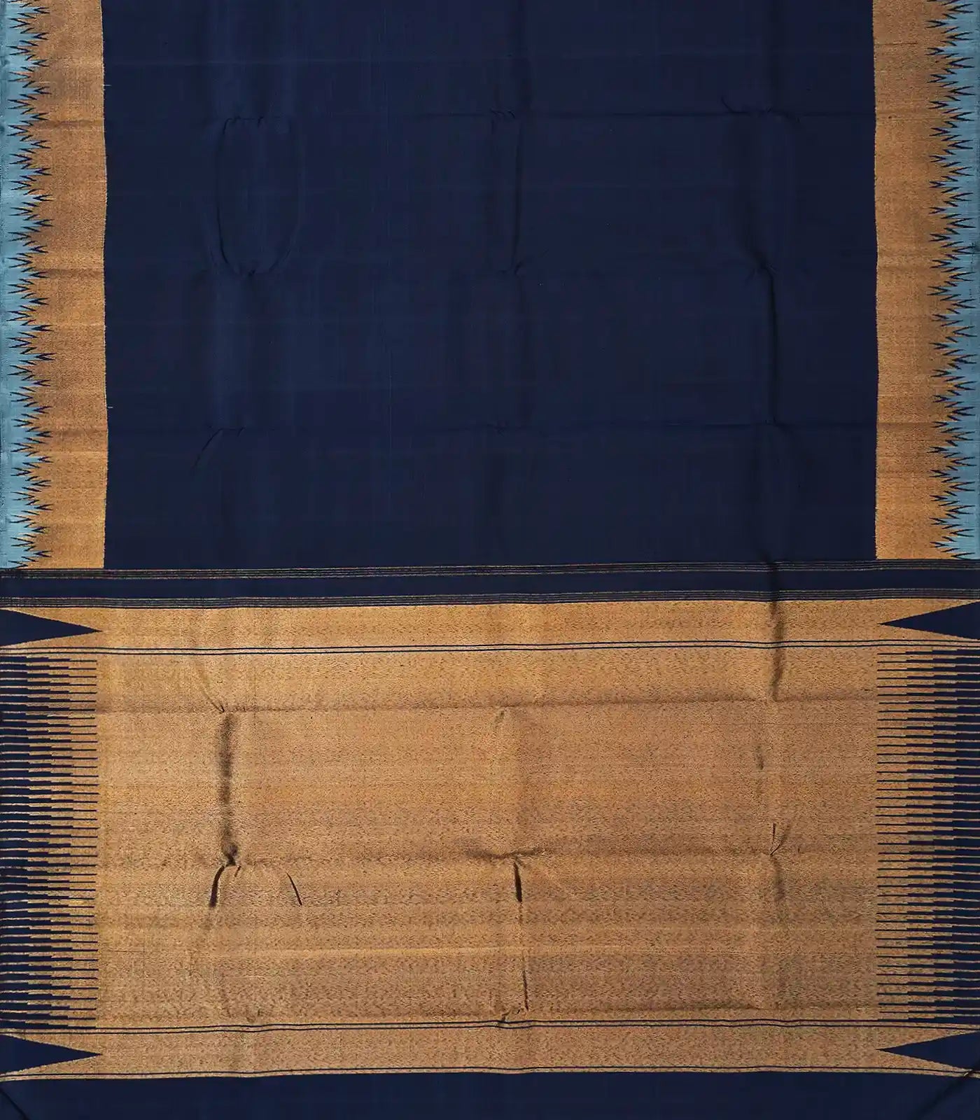 Navy Blue Handloom Korvai Kanchipuram Silk Saree With Zari-KA12361