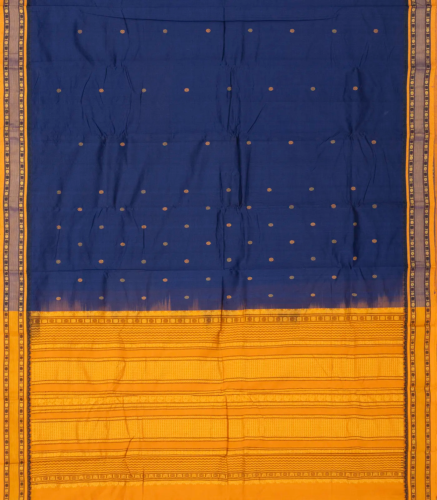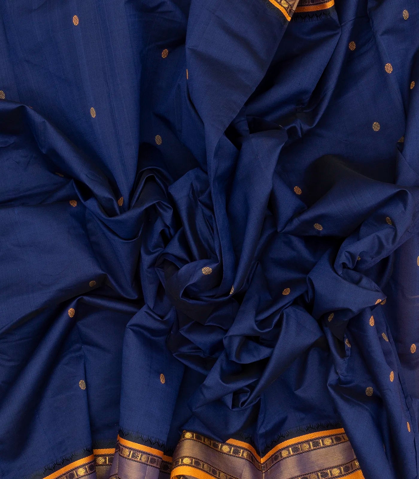 Navy Blue Handloom Poly Cotton Saree With Rudraksham Buttas-PY1258