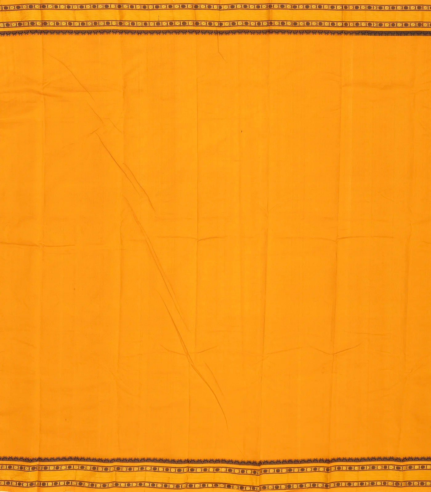 This handwoven poly cotton saree is filled with rudraksham buttas in navy blue body along with contrast border and pallu