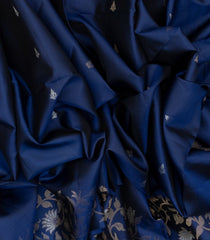 Navy Blue Handloom Soft Silk Saree With Floral Motifs-SO3997