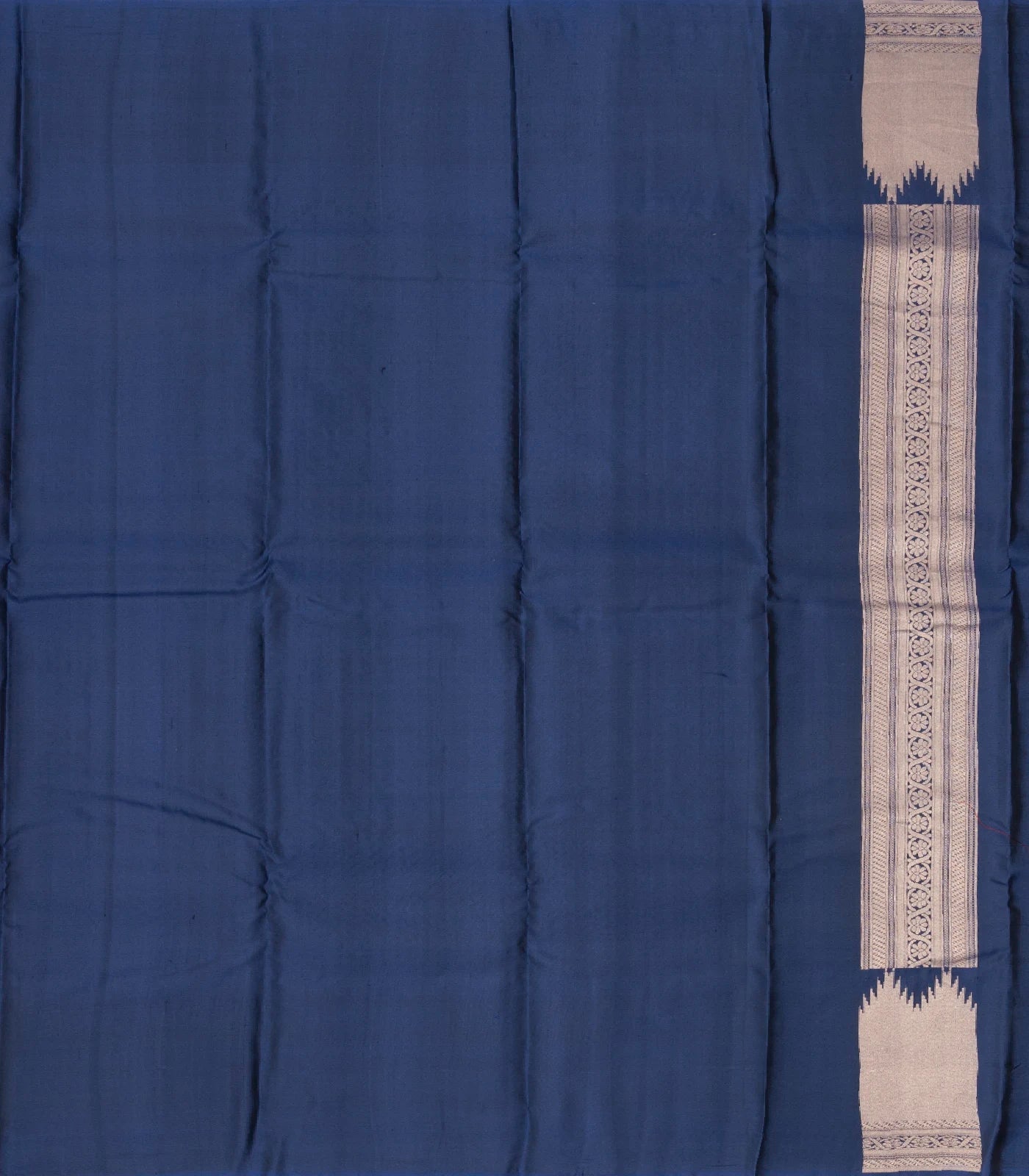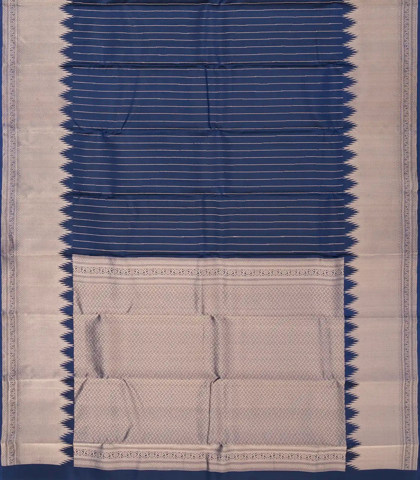 Navy Blue Handloom Soft Silk Saree With Zari Stripes & Temple Border-SO4002