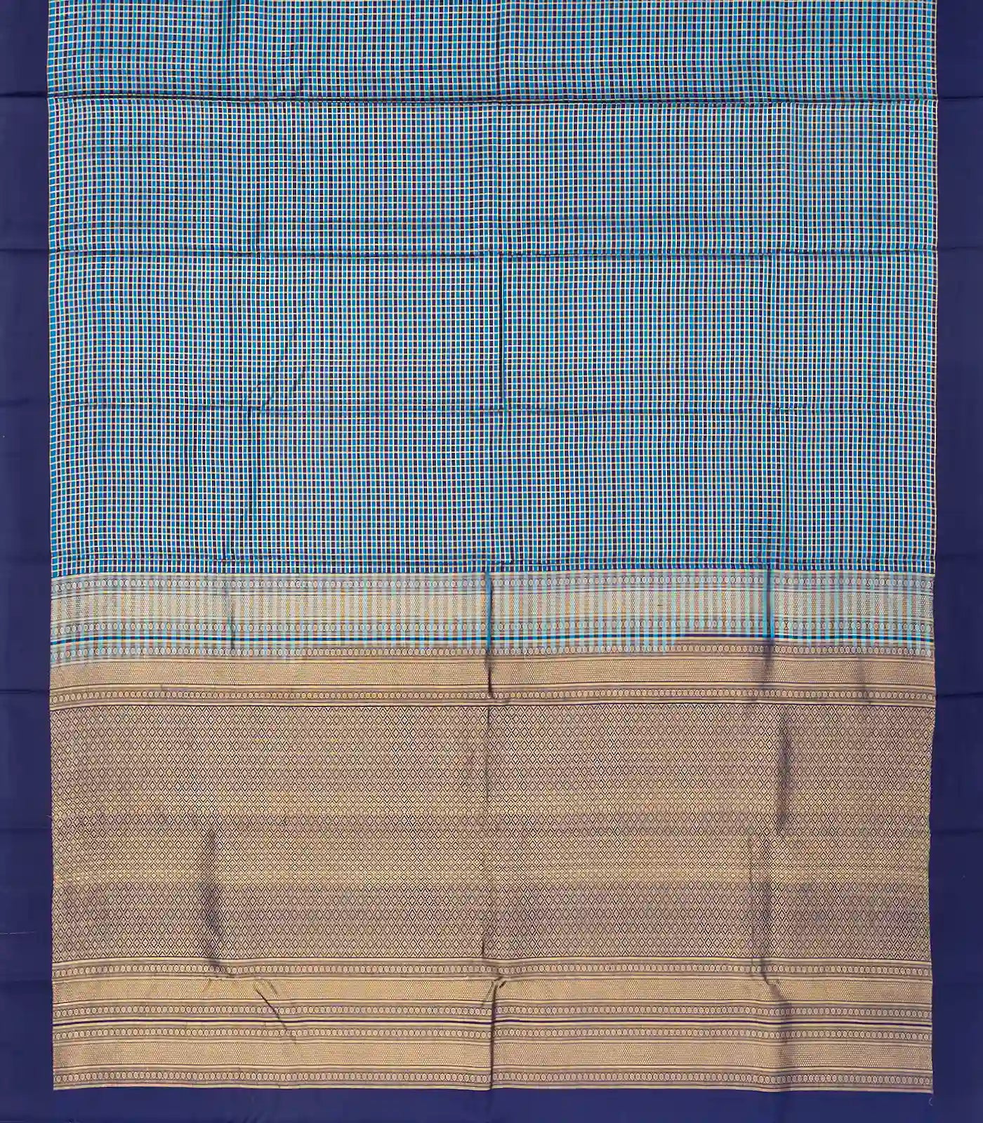 This woven silk saree is filled with checks in navy blue body along with contrast border and pallu