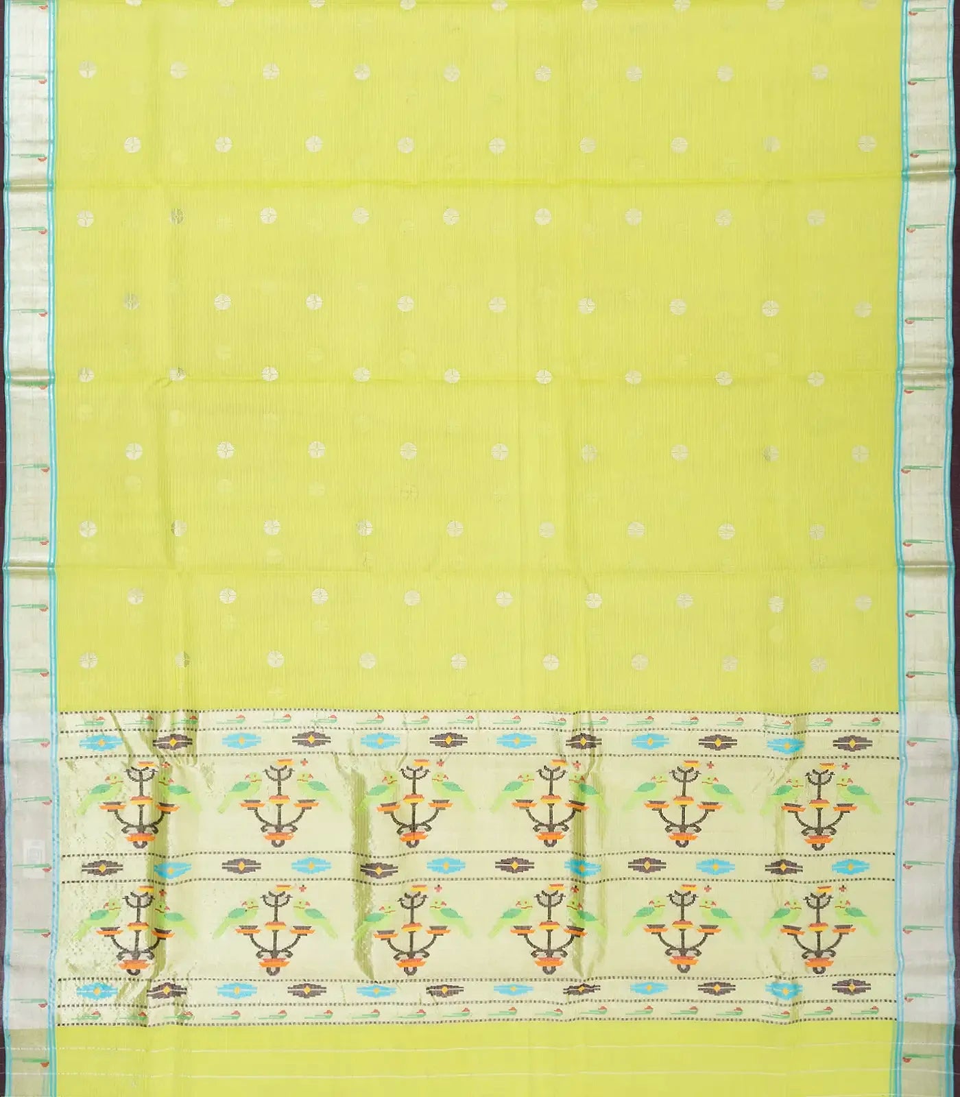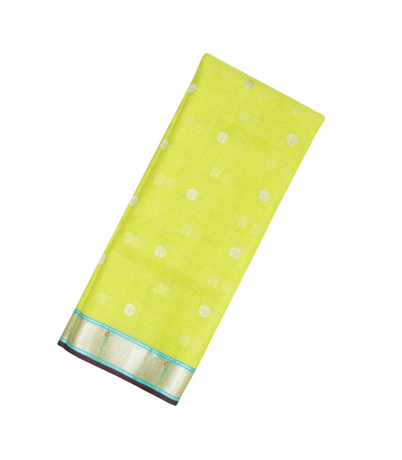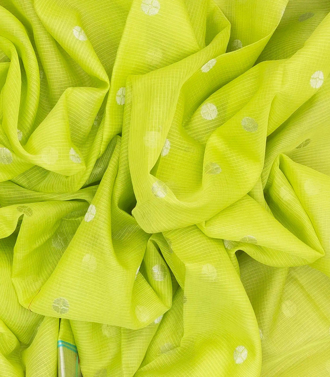 Neon Green Handloom Kota Silk Saree With Buttas & Meena Pallu-KO1028