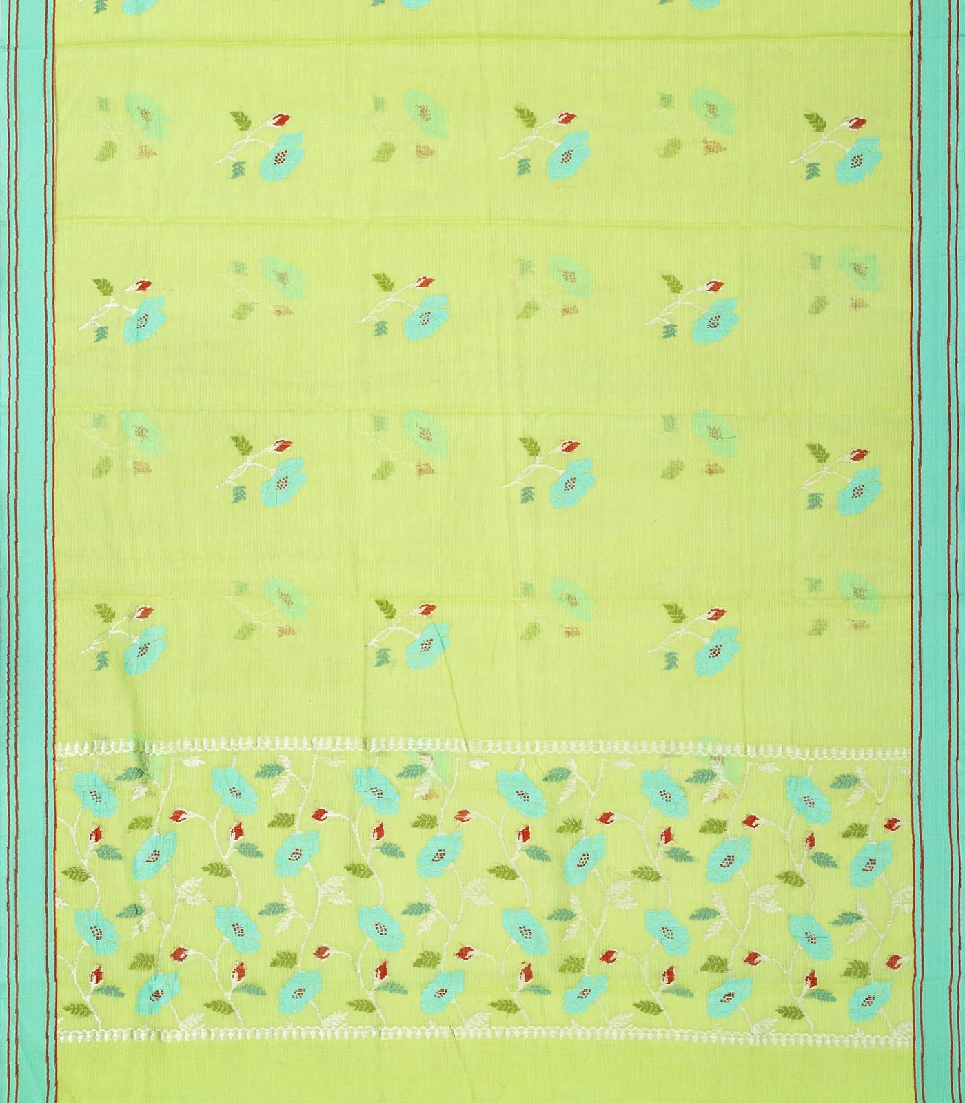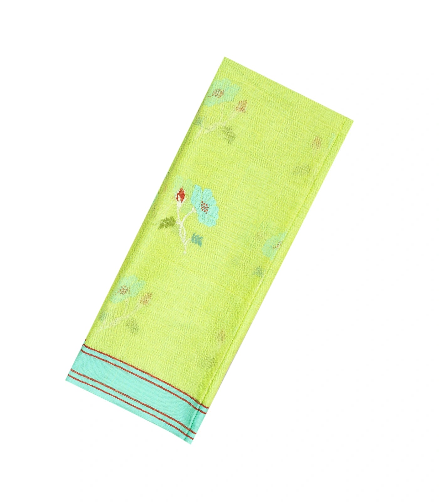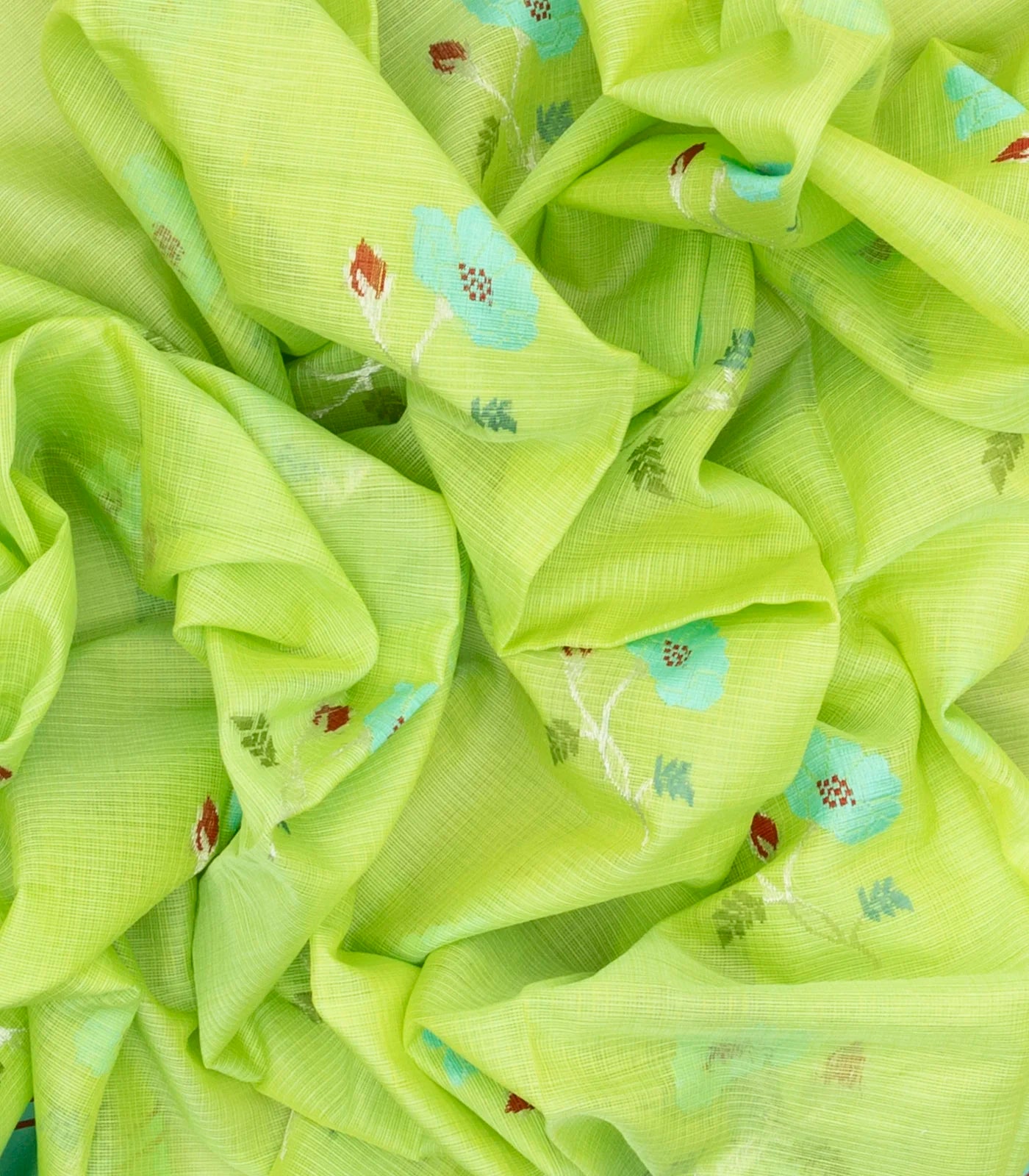 Neon Green Handloom Kota Silk Saree With Meena Floral Buttas -KO1008