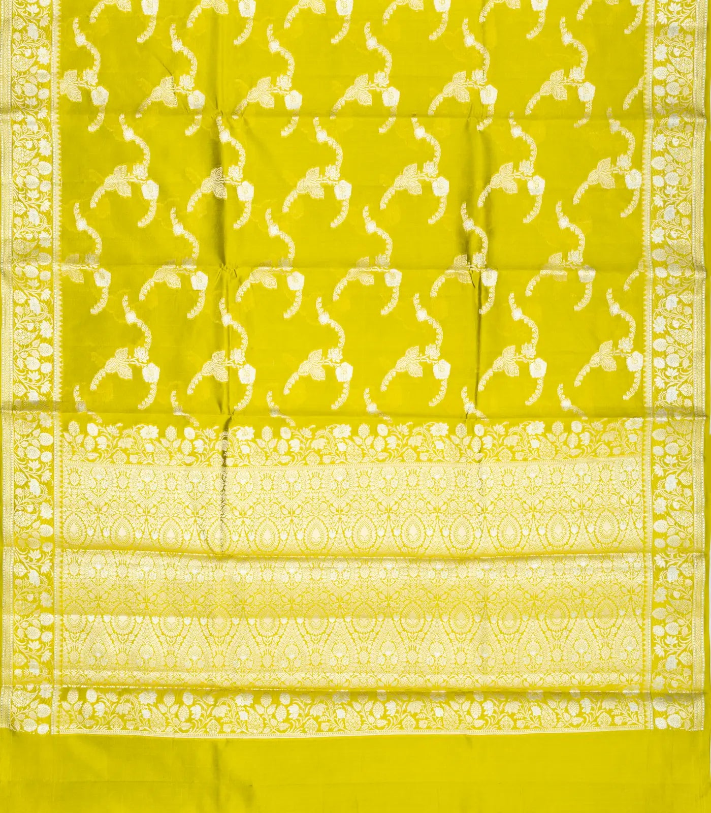 Neon Green Woven Dupion Silk Saree With Floral Buttas-DS0513