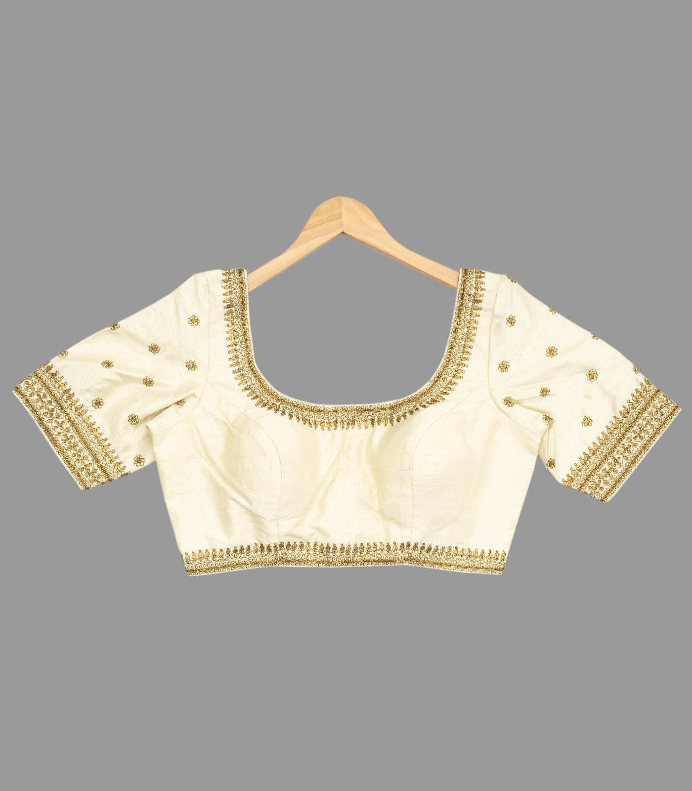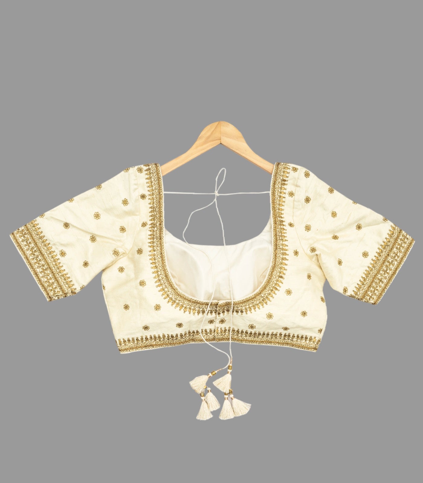 Off-White Gold Embroidered Festive Blouse -RB5109
