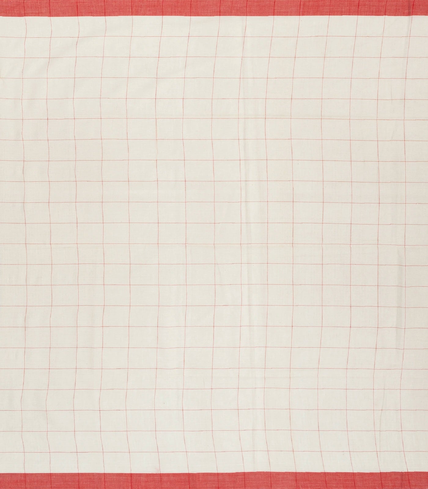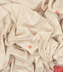 Off White Handloom Bengal Cotton Saree With Checks & Buttas-BG1369
