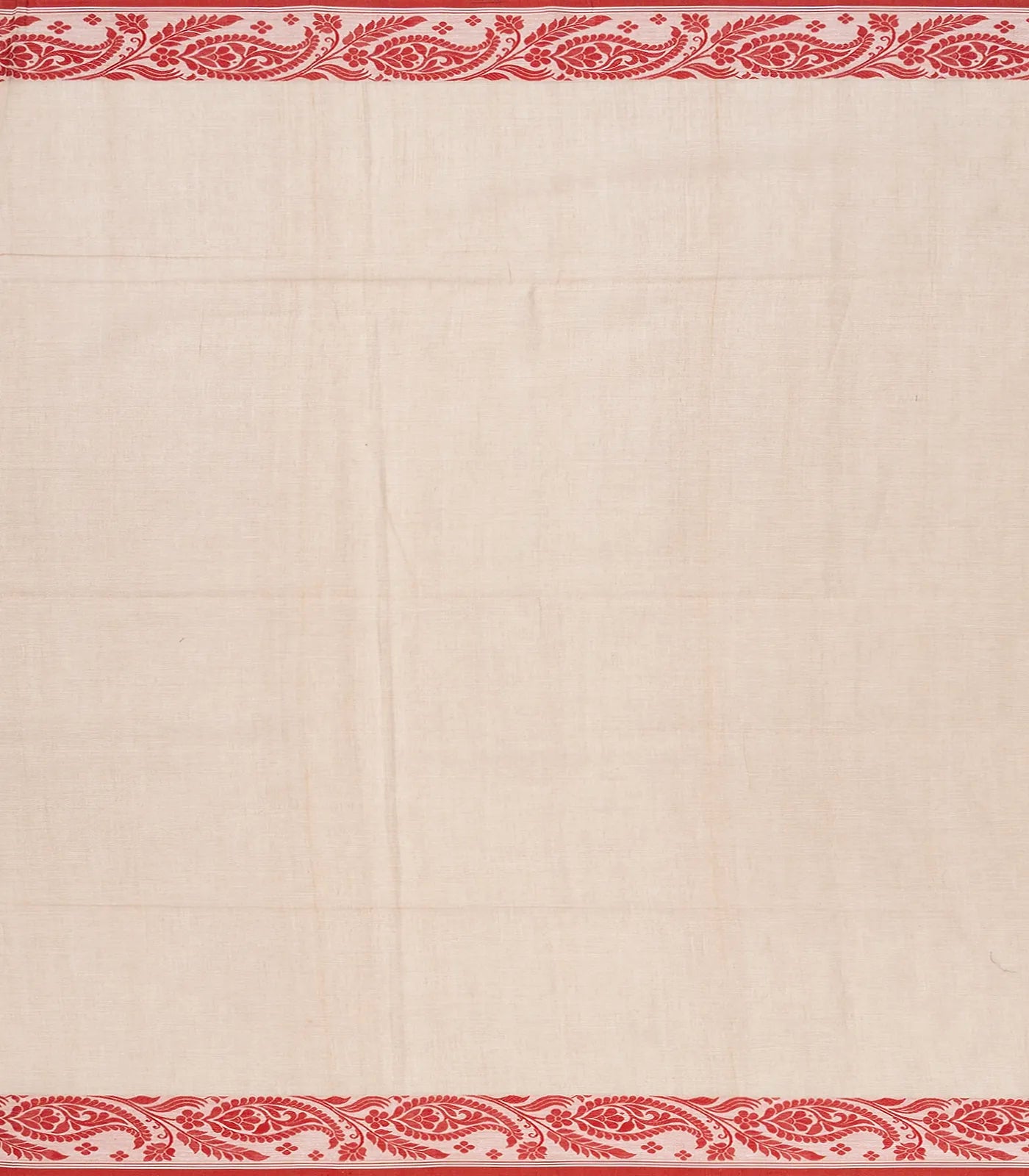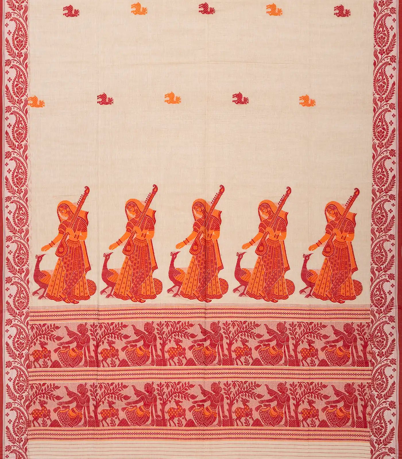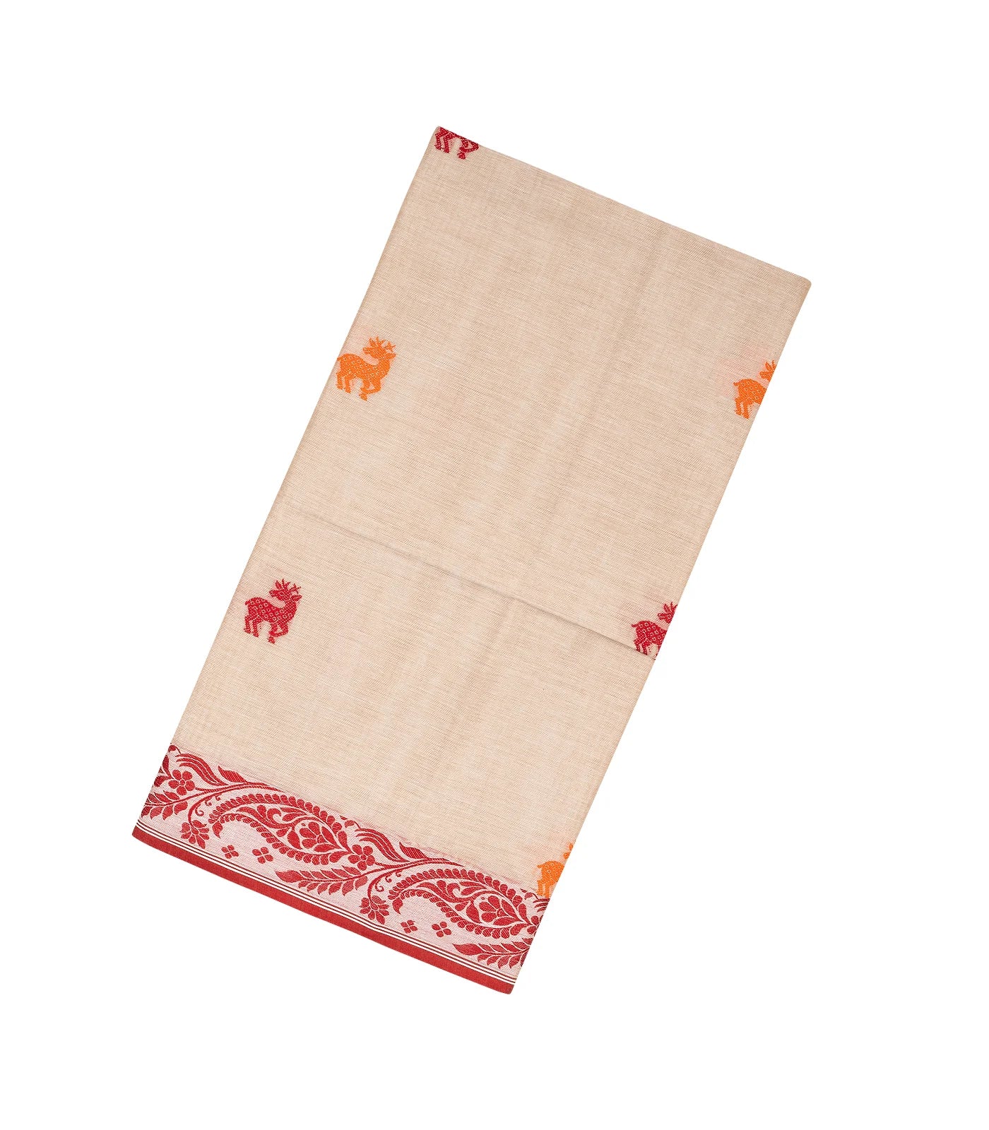 Off White Handloom Bengal Cotton Saree With Deer Buttas-BG1365