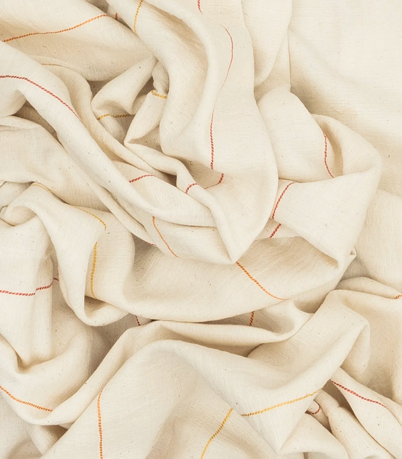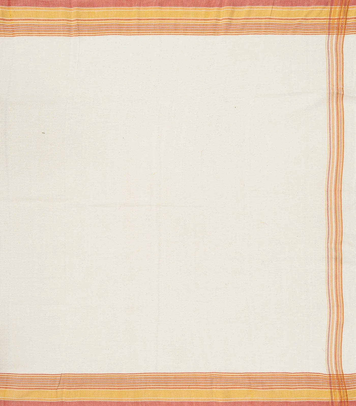 Off White Handloom Bhujodi Cotton Saree With Red Stripes