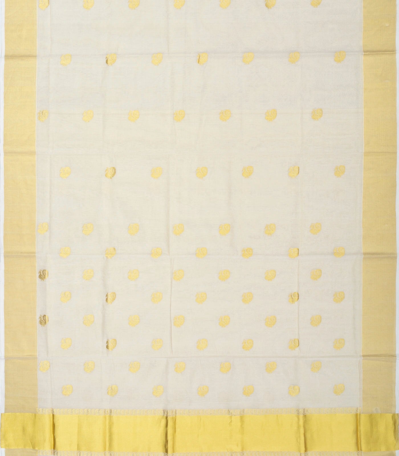 Off White Handloom Kerala Cotton Saree With Annam Buttas-KEC1008