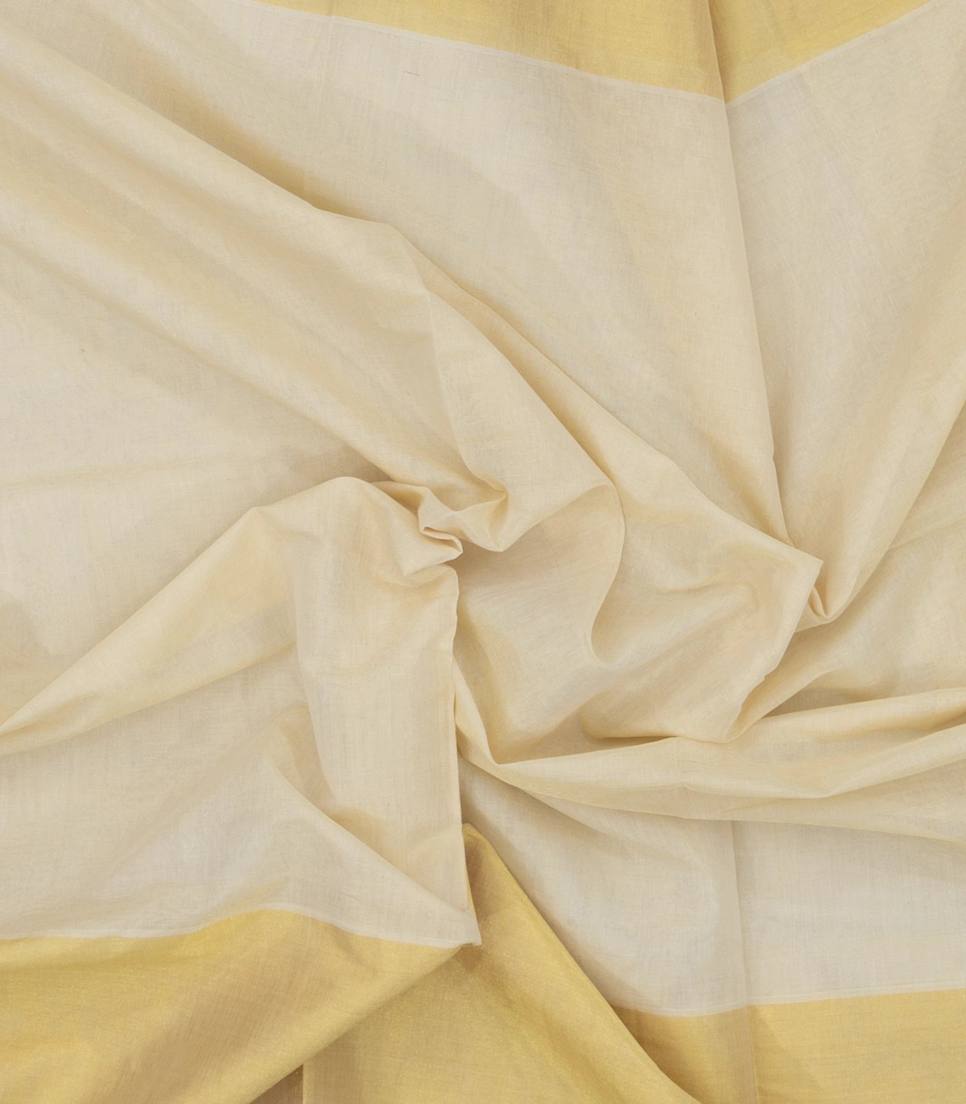 Off White Handloom Kerala Cotton Saree With Evening Morning Border-KEC1062