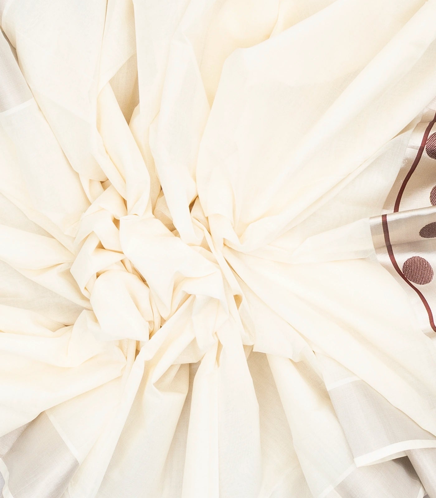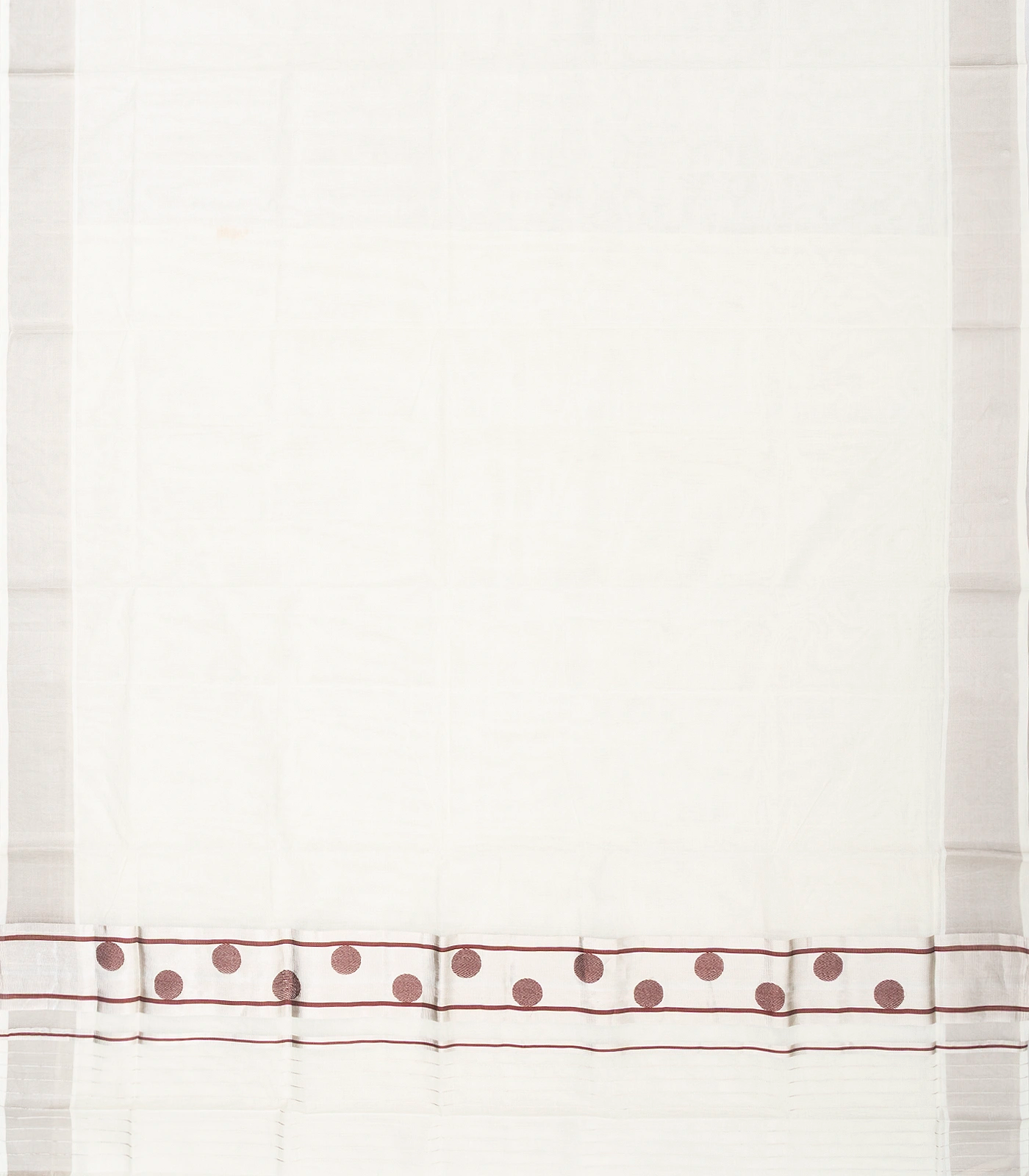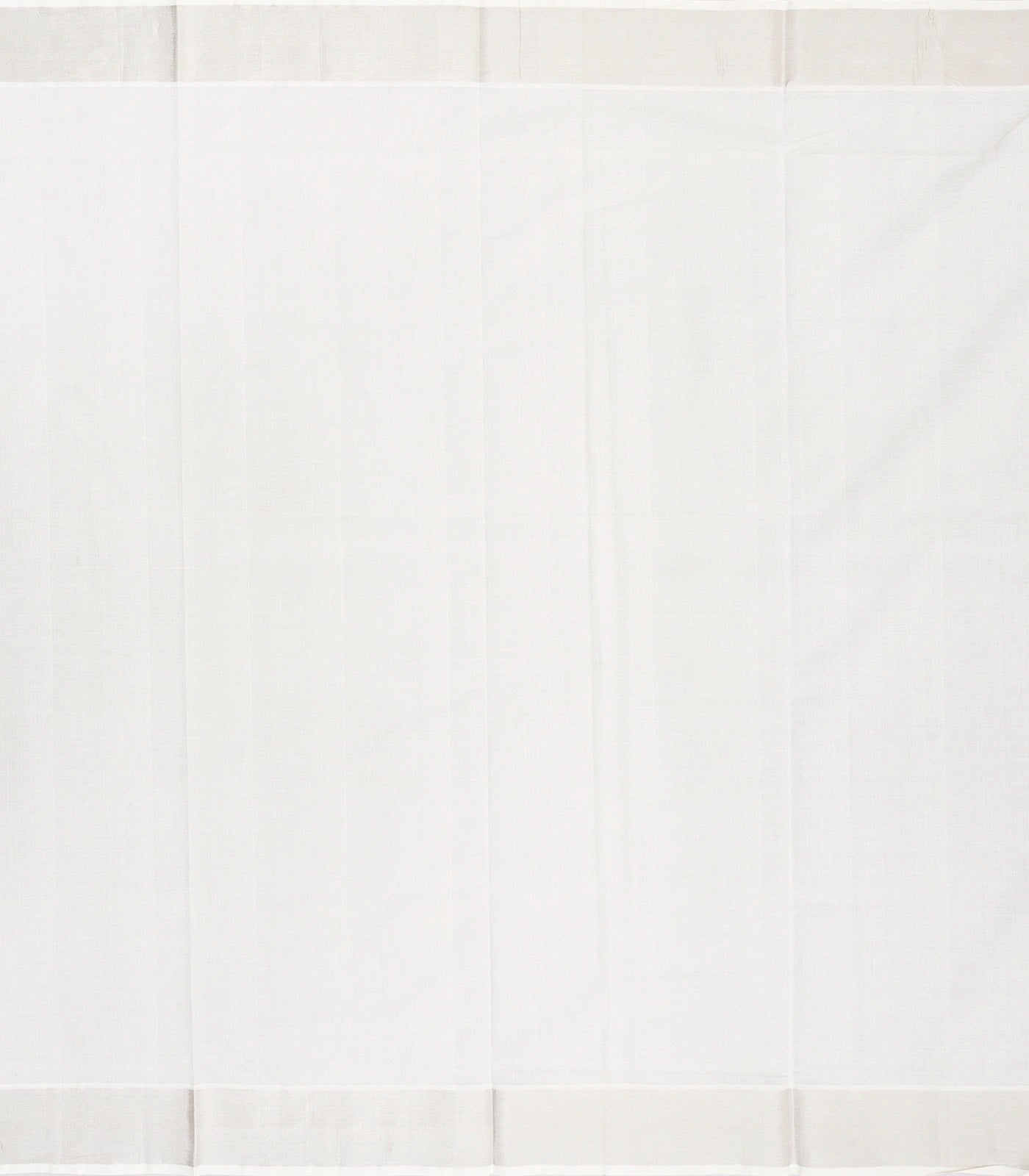 Off White Handloom Kerala Cotton Saree With Silver Zari Border-KEC1004