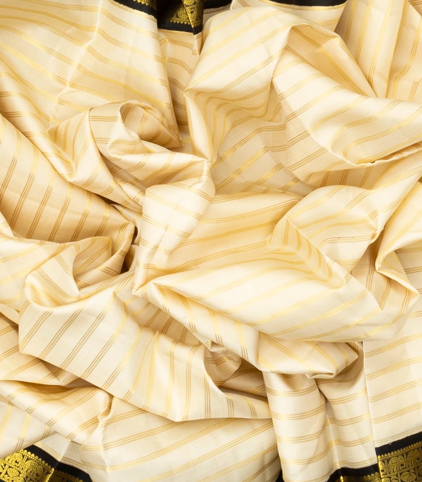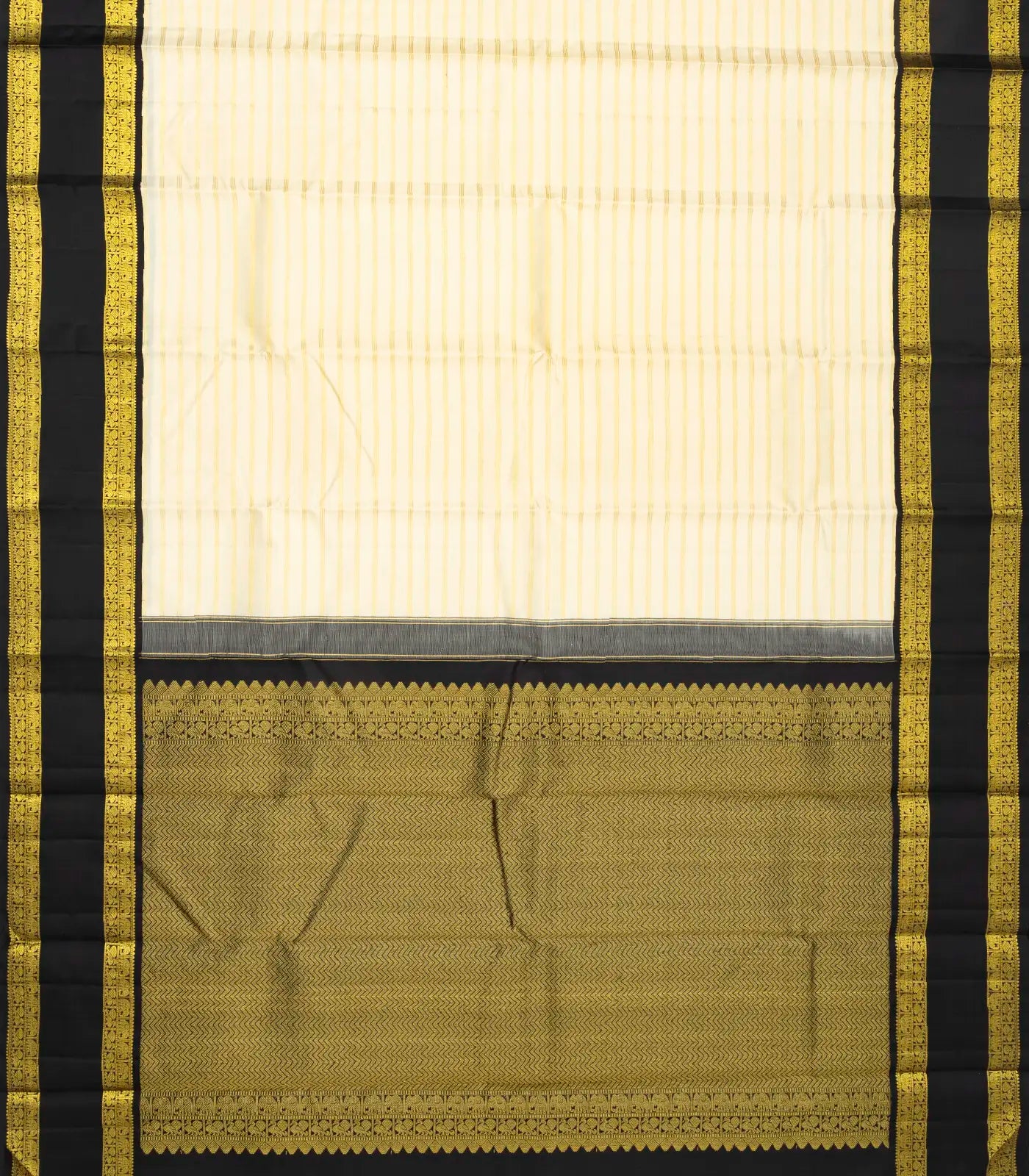 Off White Handloom Korvai Kanchipuram Silk Saree With Zari Stripes