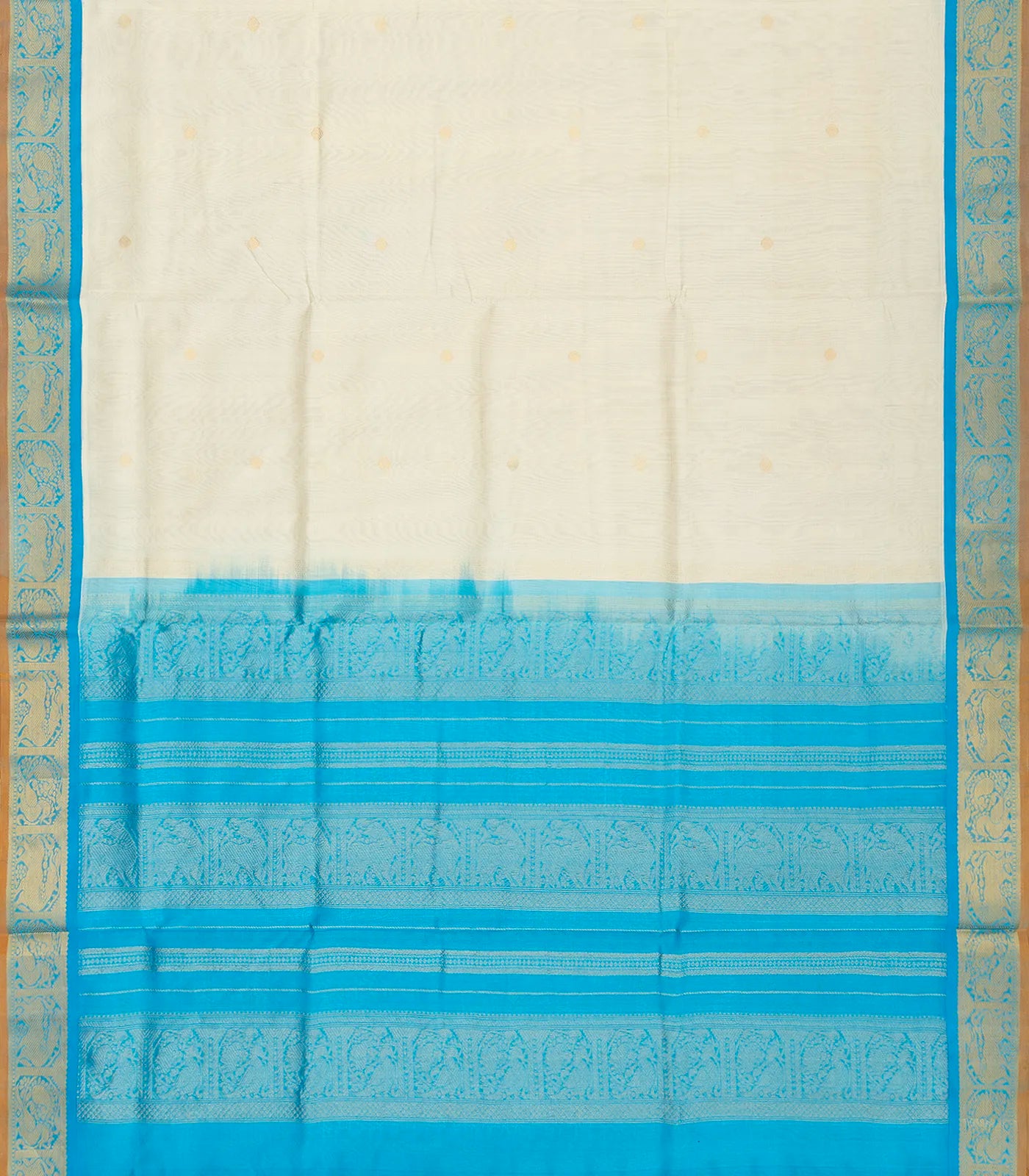 Off White Handloom Korvai Silk Cotton Saree With Buttas & Contrast Border-SC3735