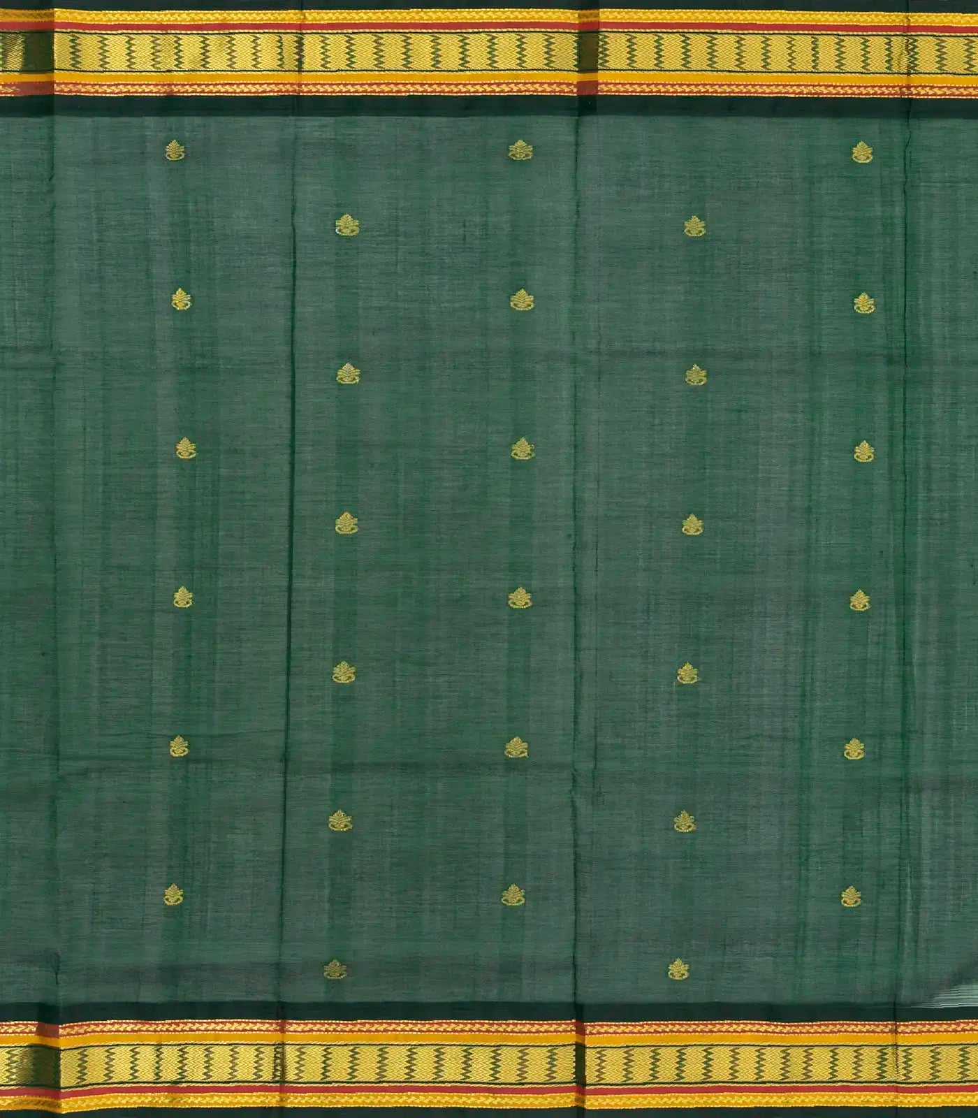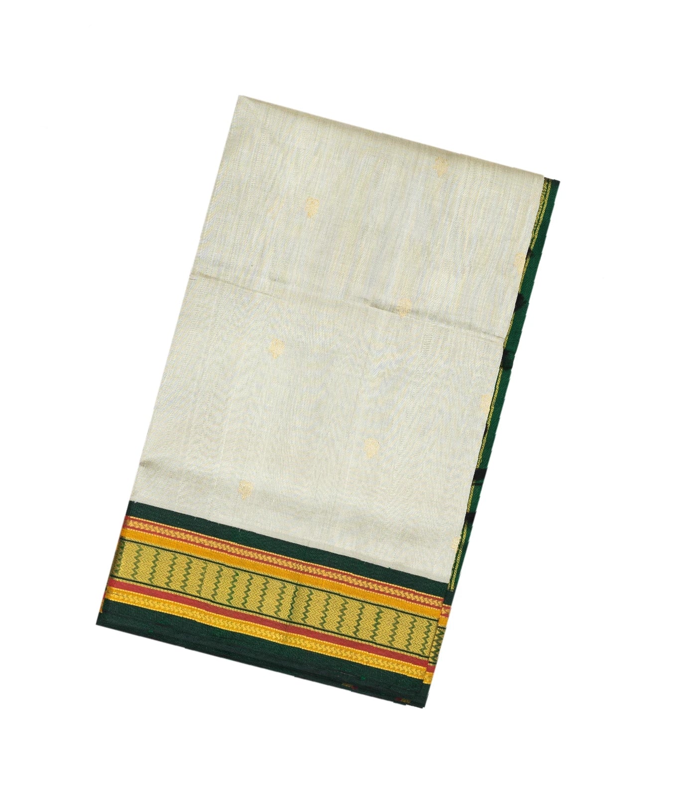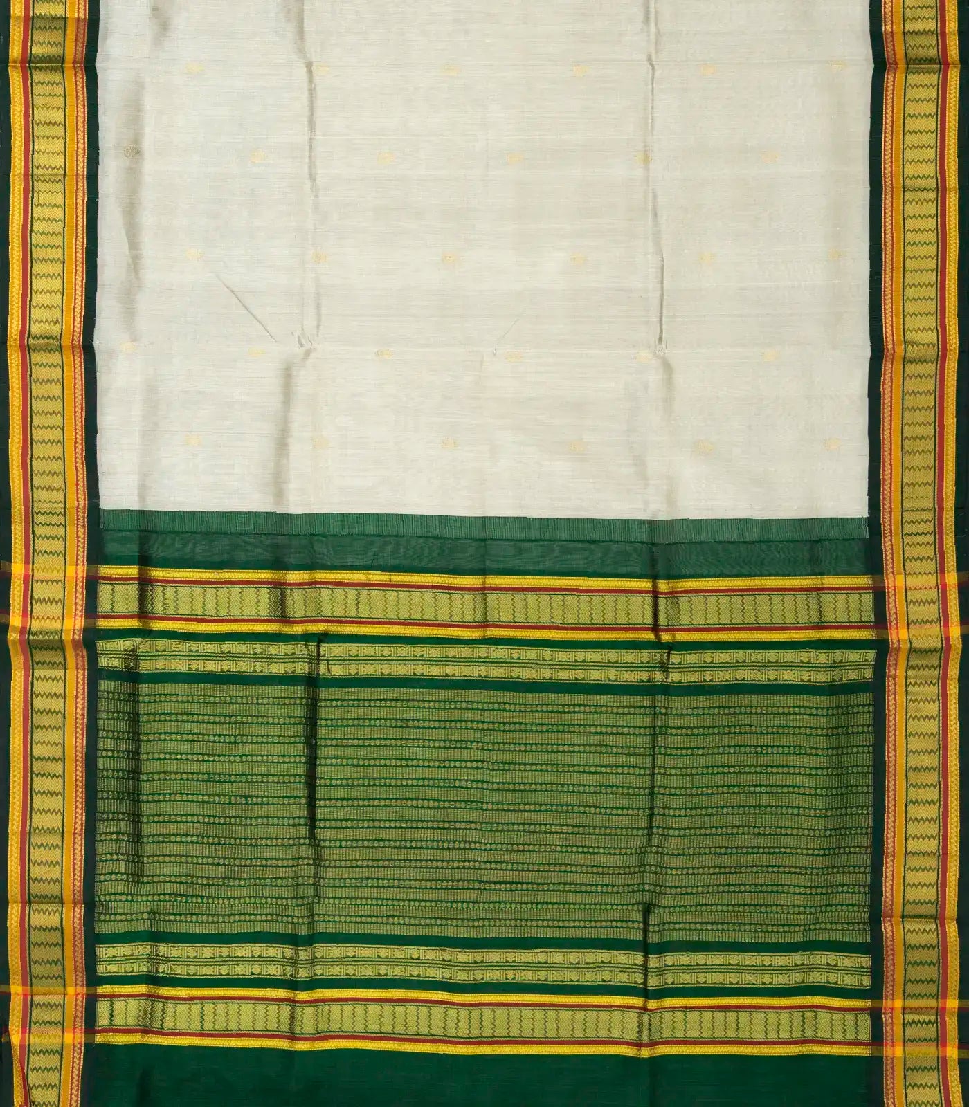 Off White Handloom Korvai Silk Cotton Saree With Green Border-SC3349
