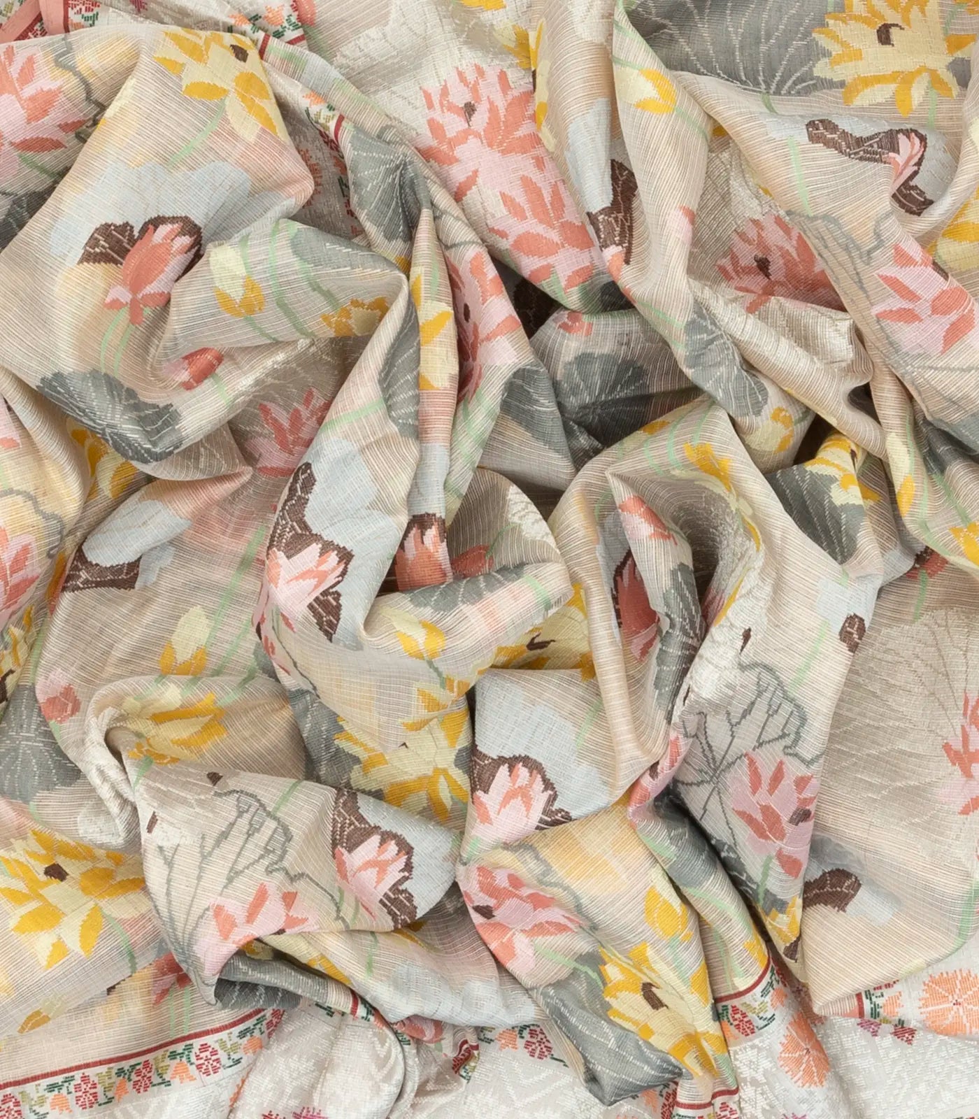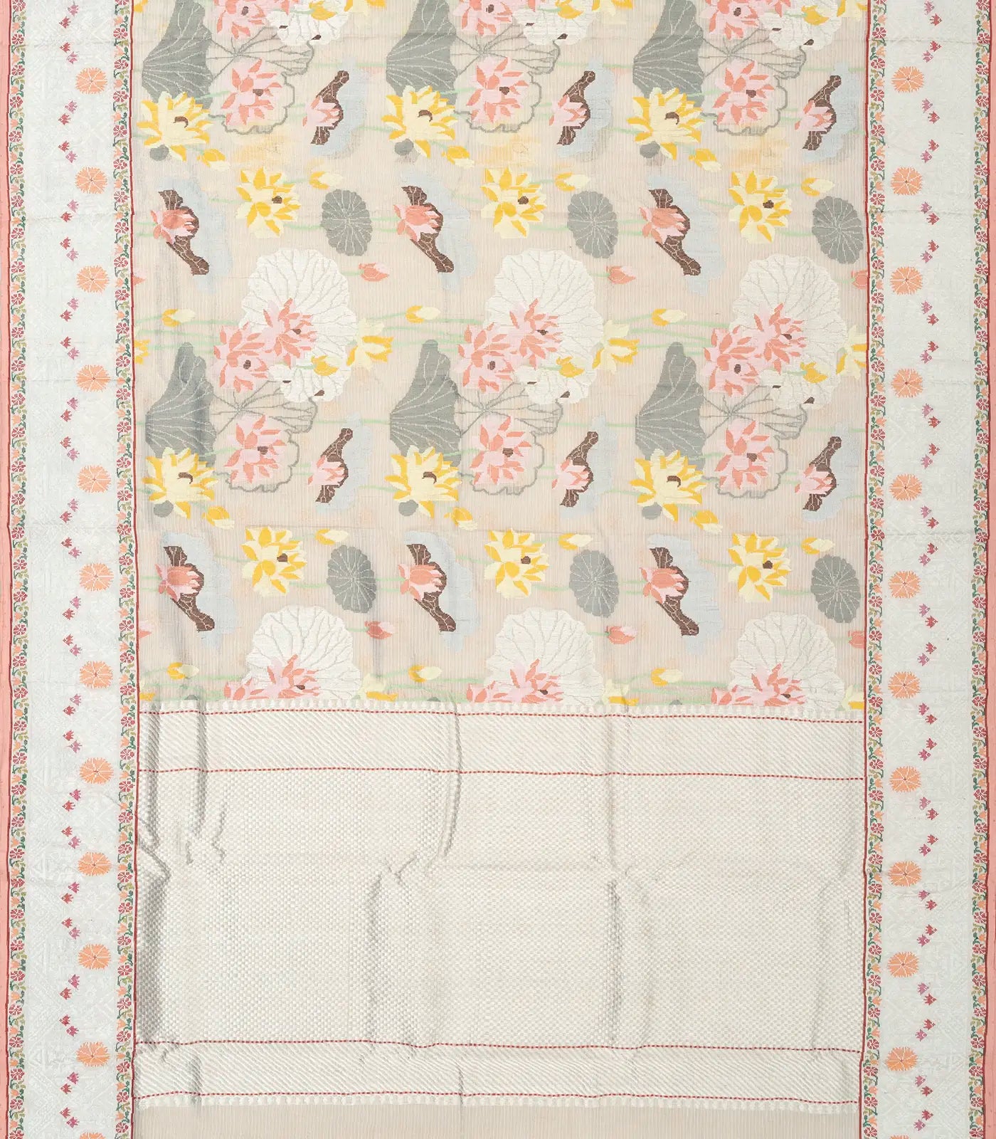 Off White Handloom Kota Silk Saree With Meena Floral Motifs-KO1004